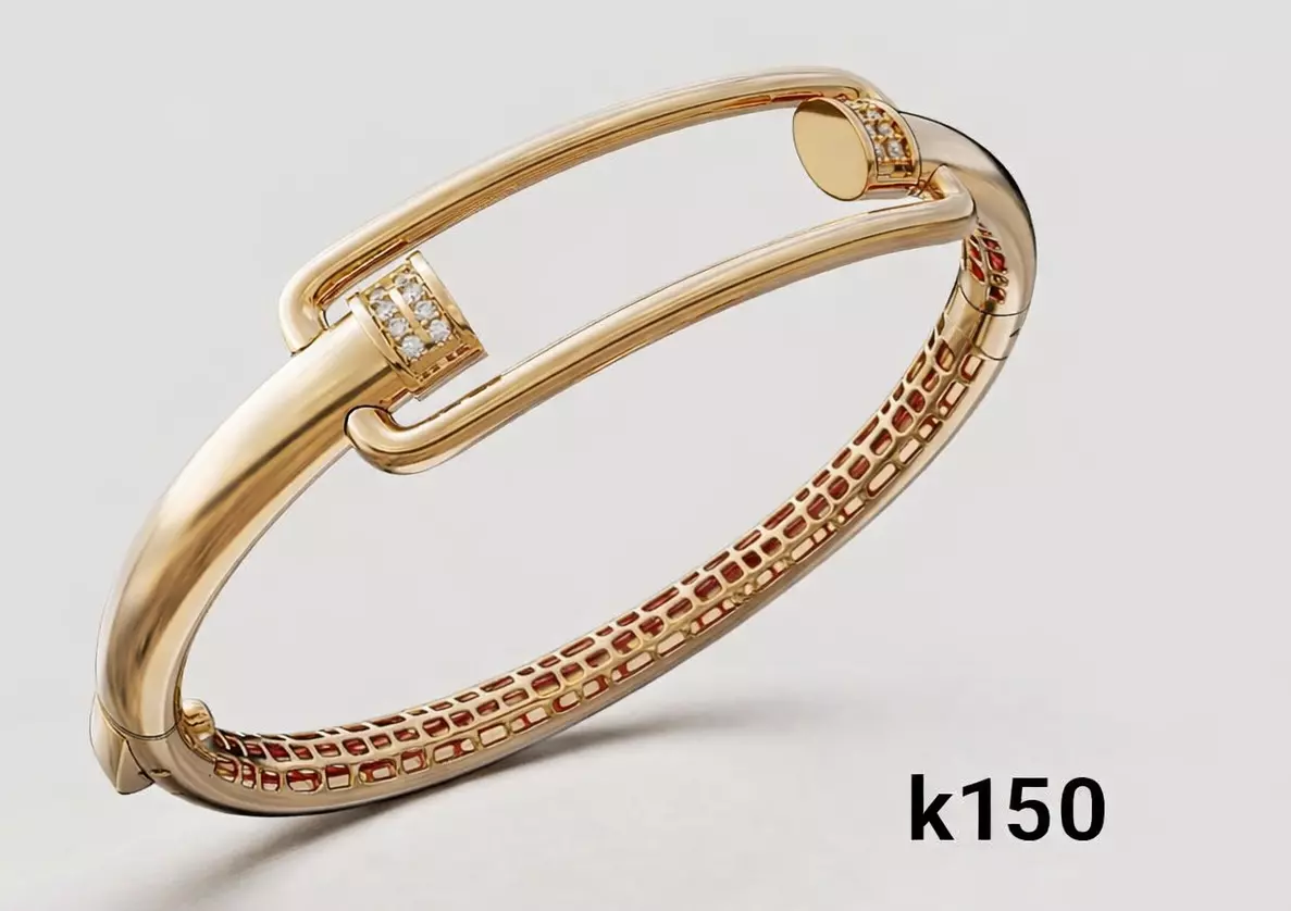 With its open design and soft, flowing lines, this bracelet offers a sense of elegance and luxury simplicity along with precise manufacturing engineering. In addition to creating a modern and different look, the open form of the body allows for easier adjustment on the hand and a desirable wearing experience.The delicate details of the stone placement at the connection points are designed with high precision to maintain structural strength, installation and final finishing with minimal risk and maximum quality. The internal network structure helps improve the casting process, reduce excess weight and increase the uniformity of the final surface. This model is the right choice for manufacturers looking for a lightweight, stylish and completely production-ready bracelet for modern collections.