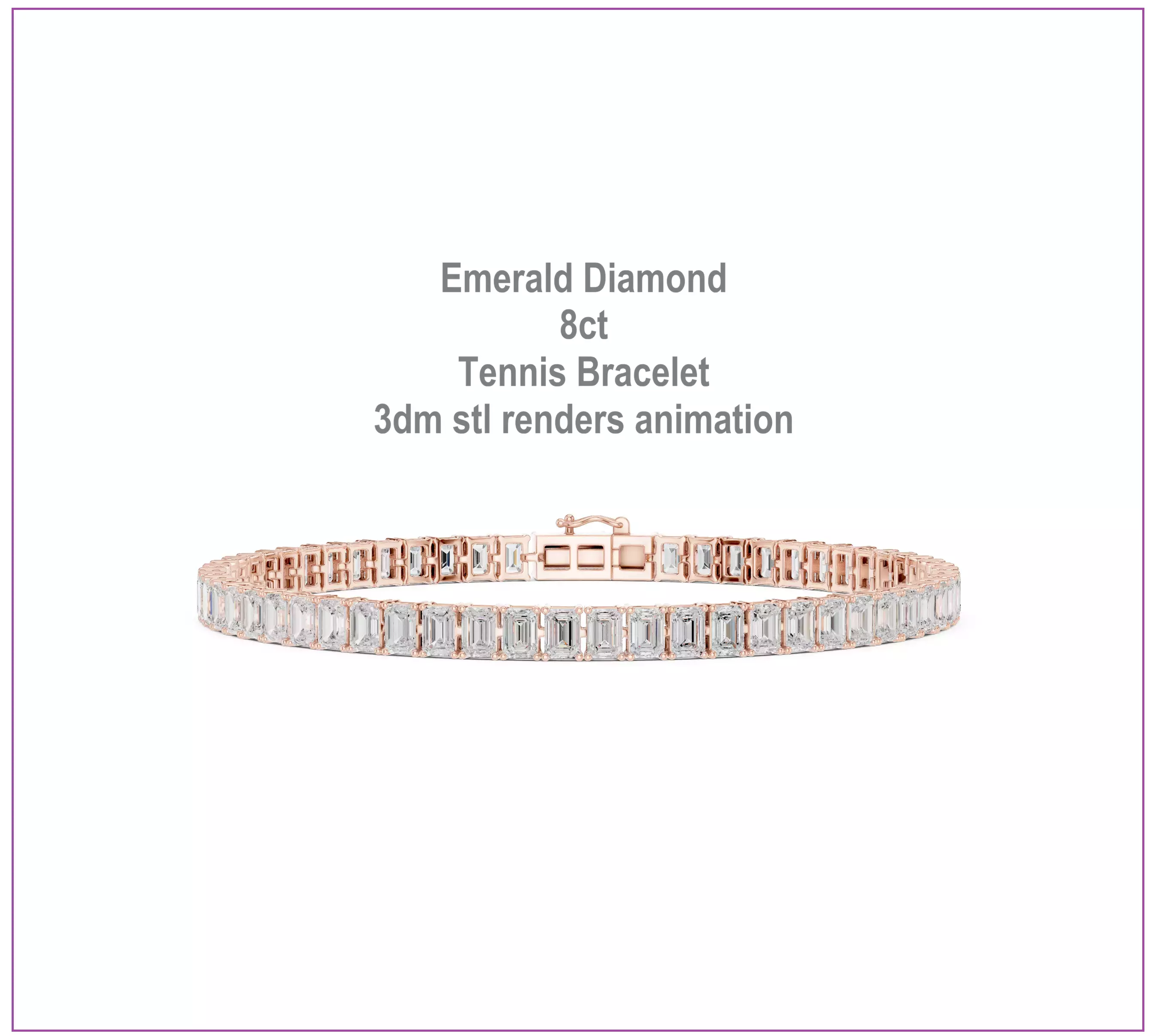 Emerald Diamond 8ct Tennis Bracelet 3dm stl renders animation 3D print model