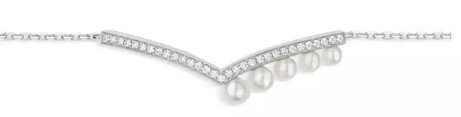 Joséphine Aigrette pavé diamond bracelet in white gold, set with Akoya cultured pearls.