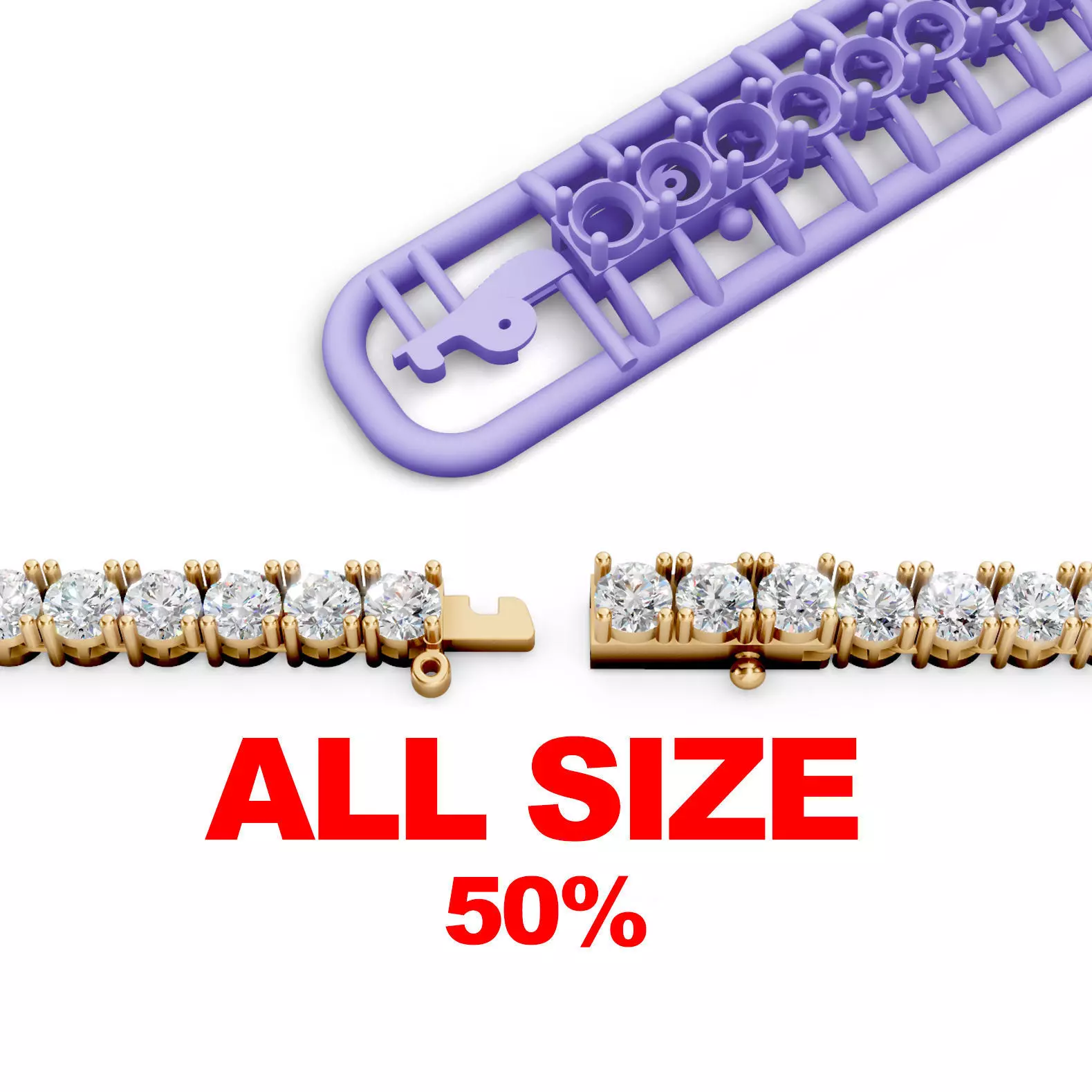 This is a high-quality flexible tennis bracelet model designed as a single solid piece for easy printing, casting, and editing. The file is optimized for jewelry designers, 3D printing workshops, and manufacturers who need a clean, production-ready model.