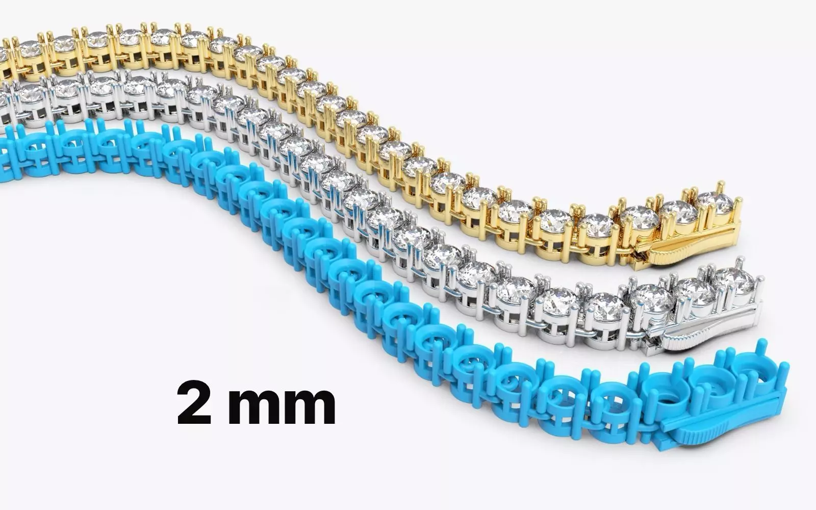 Flexible Tennis Bracelet 2.00 mm | STL and 3D | Solid Model