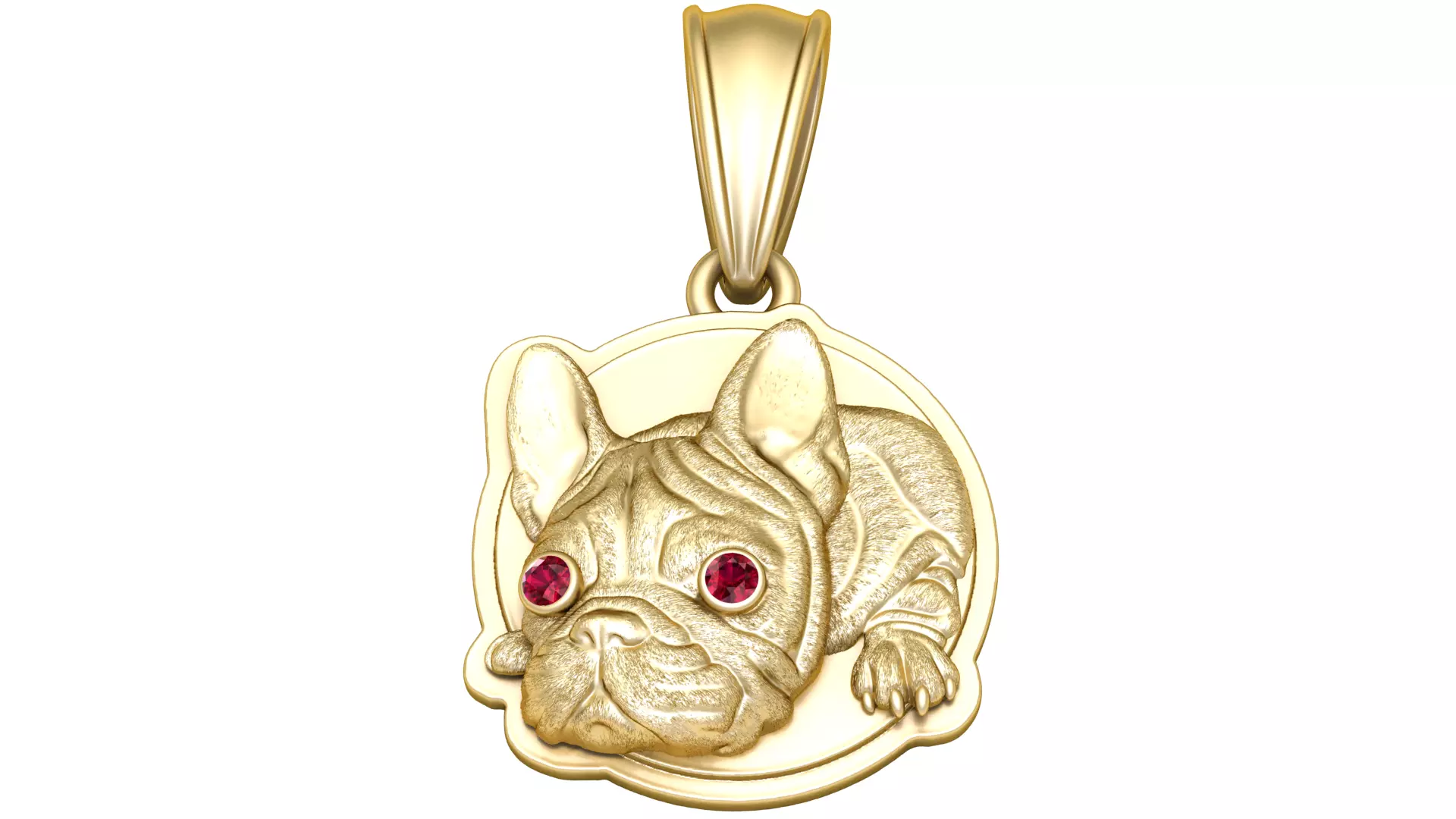 This Gold French Bulldog Pendant with Ruby Eyes is a charming tribute to one of the most beloved dog breeds. Expertly crafted in gold, the pendant features a finely detailed French Bulldog design with expressive facial features and a playful resting pose. The sparkling ruby-like stones set into the eyes bring life and vibrance, making it a standout piece for dog lovers and jewelry collectors alike.