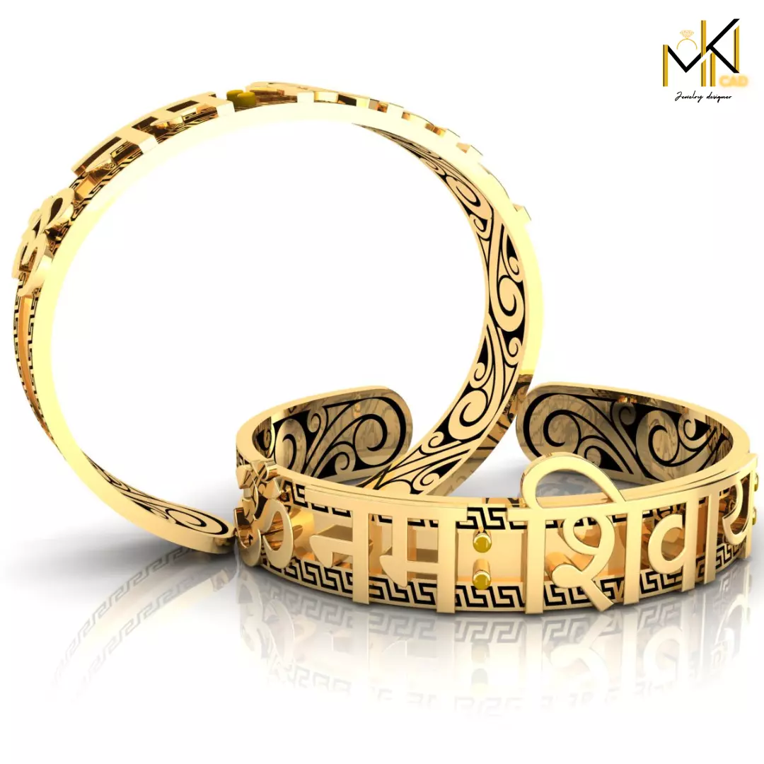 "Divine elegance meets timeless craftsmanship This sacred gold/silver bracelet, inscribed with 'ॐ नमः शिवाय,' embodies the power and blessings of Mahadev. A perfect blend of spirituality and style!. Elevate your style with this elegant Gold Bracelet inscribed with ॐ नमः शिवाय, a sacred mantra symbolizing peace, protection, and divine connection. Crafted with precision, this bracelet blends timeless spirituality with modern sophistication, making it perfect for daily wear or special occasions. The delicate engraving adds a personal, meaningful touch, making it an ideal gift for loved ones or a cherished addition to your own collection.
