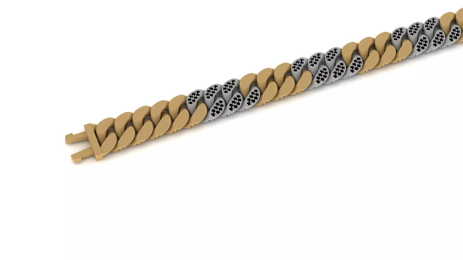This product contains the native 3DM file only; no STL file is included. This high-quality 3DM CAD model features a professional Iced-Out Cuban link design with a striking two-tone gold and silver aesthetic. The model includes pre-designed pavé settings for high-density diamond or gemstone placement on alternating links. Optimized for luxury jewelry manufacturing, this design ensures a heavy, premium feel with a secure integrated box clasp. This 3DM source file is perfect for creating high-end urban jewelry, custom necklaces, or statement bracelets in gold and platinum.