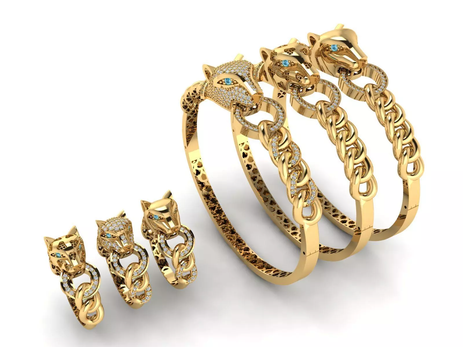 Bracelets weigh approximately 15 grams. 18K Gold . The weight of the rings is approximately 5 grams. 18K Gold
