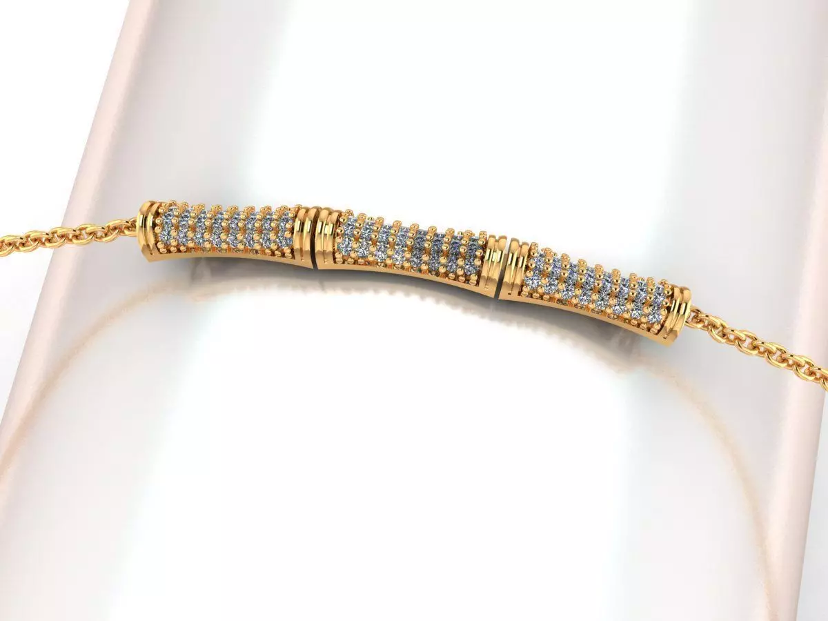 The gently curved bar ensures a natural fit on the wrist, while the integrated chain provides both comfort and contemporary style. Stone seats and prongs are precisely modeled for secure setting and reliable production.