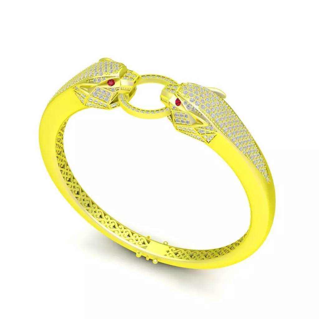 This 3D jewelry model showcases a luxurious double panther head bangle symbolizing strength, confidence, and elegance.