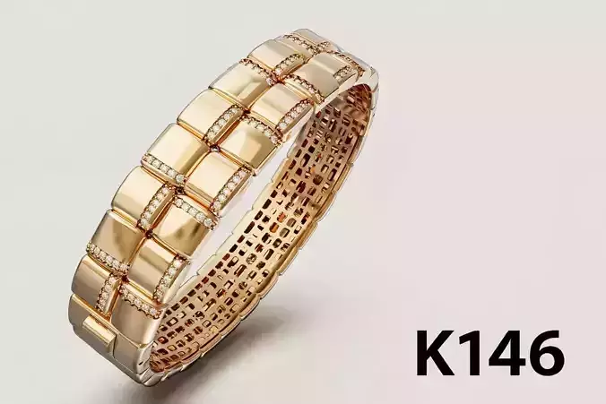 This luxury gold bangle bracelet features an elegant interlinked design composed of polished rectangular segments combined with refined accent detailing that adds depth and visual rhythm. The smooth reflective surfaces create a premium look suitable for modern high-end jewelry collections.