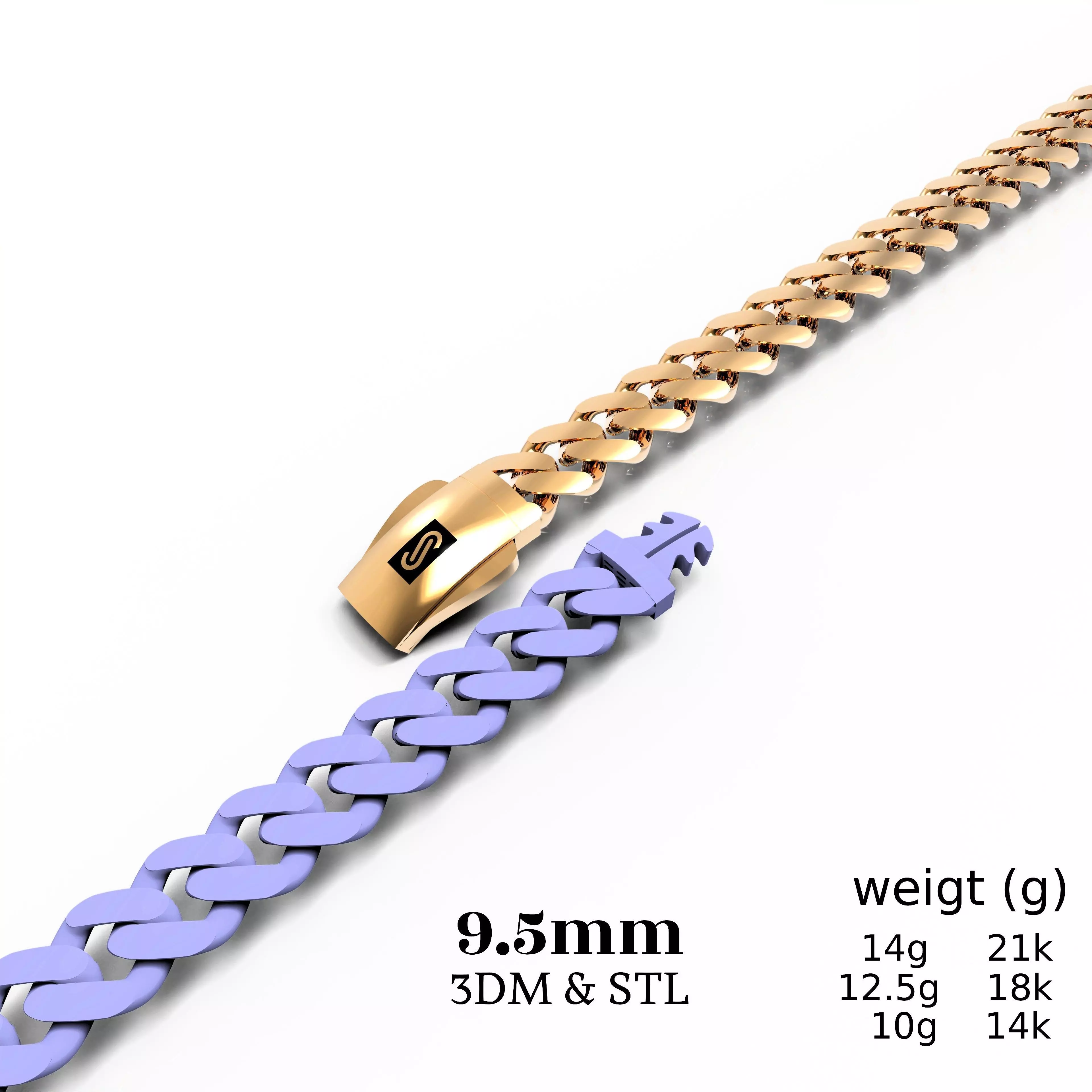 MONACO CHAIN CLASSIC BRACELET-9.5MM - STL & 3DMA premium flexible bracelet model inspired by luxury jewelry design, created as a single solid piece to ensure smooth printing, clean casting, and easy customization.This model is optimized for professional jewelers, CAD designers, and manufacturing workshops looking for a production‑ready, error‑free file.