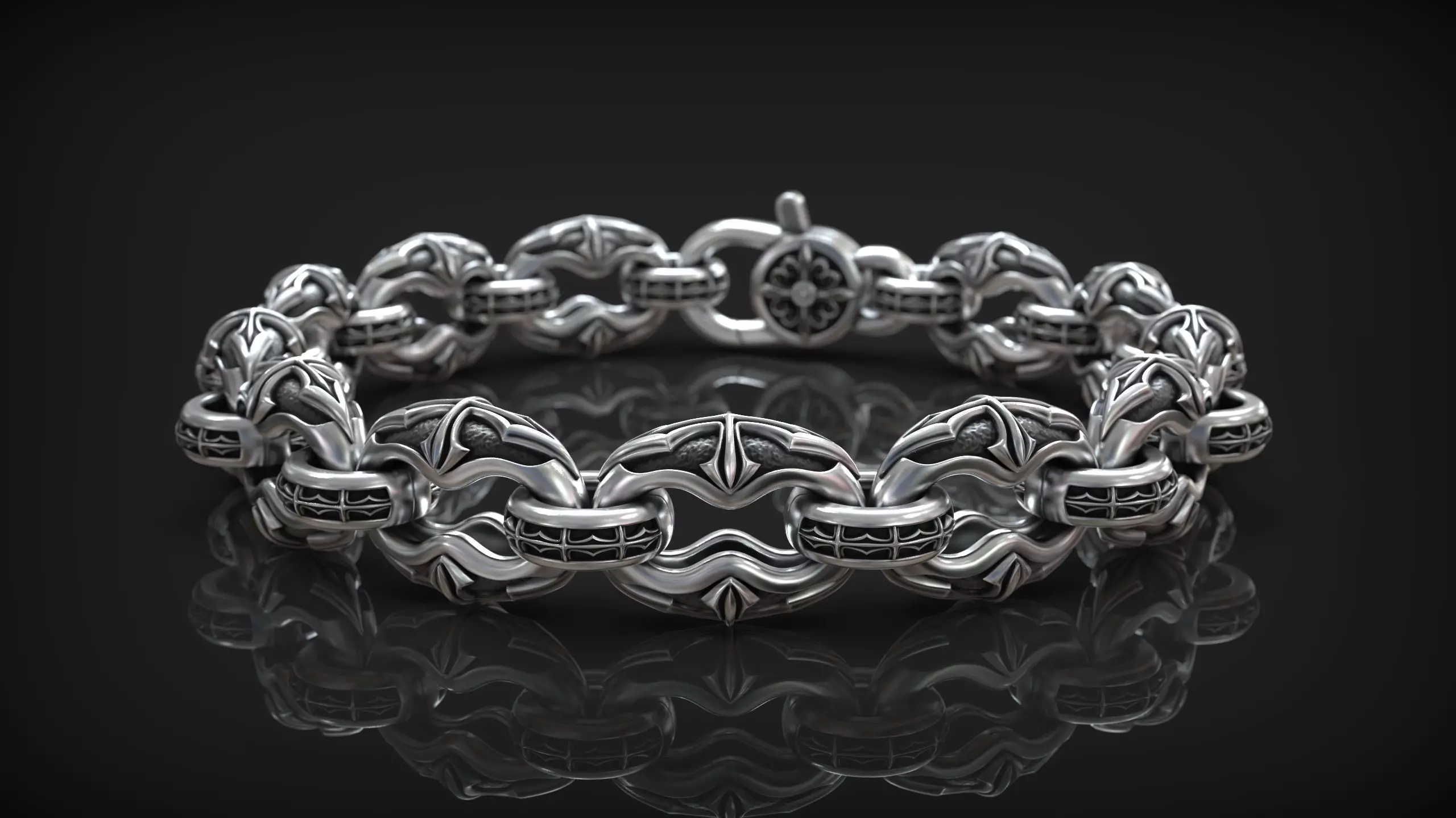 This 3D model represents a meticulously crafted bracelet adorned with stylized Maltese crosses in a sophisticated Gothic design. Each link is sculpted with precision, featuring ornamental reliefs and flowing patterns that combine strength and elegance. The alternating polished and darkened surfaces create a striking visual contrast, enhancing the depth of the relief and emphasizing the cross motifs. The bracelet’s design symbolizes courage, faith, and timeless artistry, making it ideal for 3D printing, jewelry visualization, or concept art in Gothic and medieval-inspired themes. Perfect for both men’s and unisex jewelry collections.