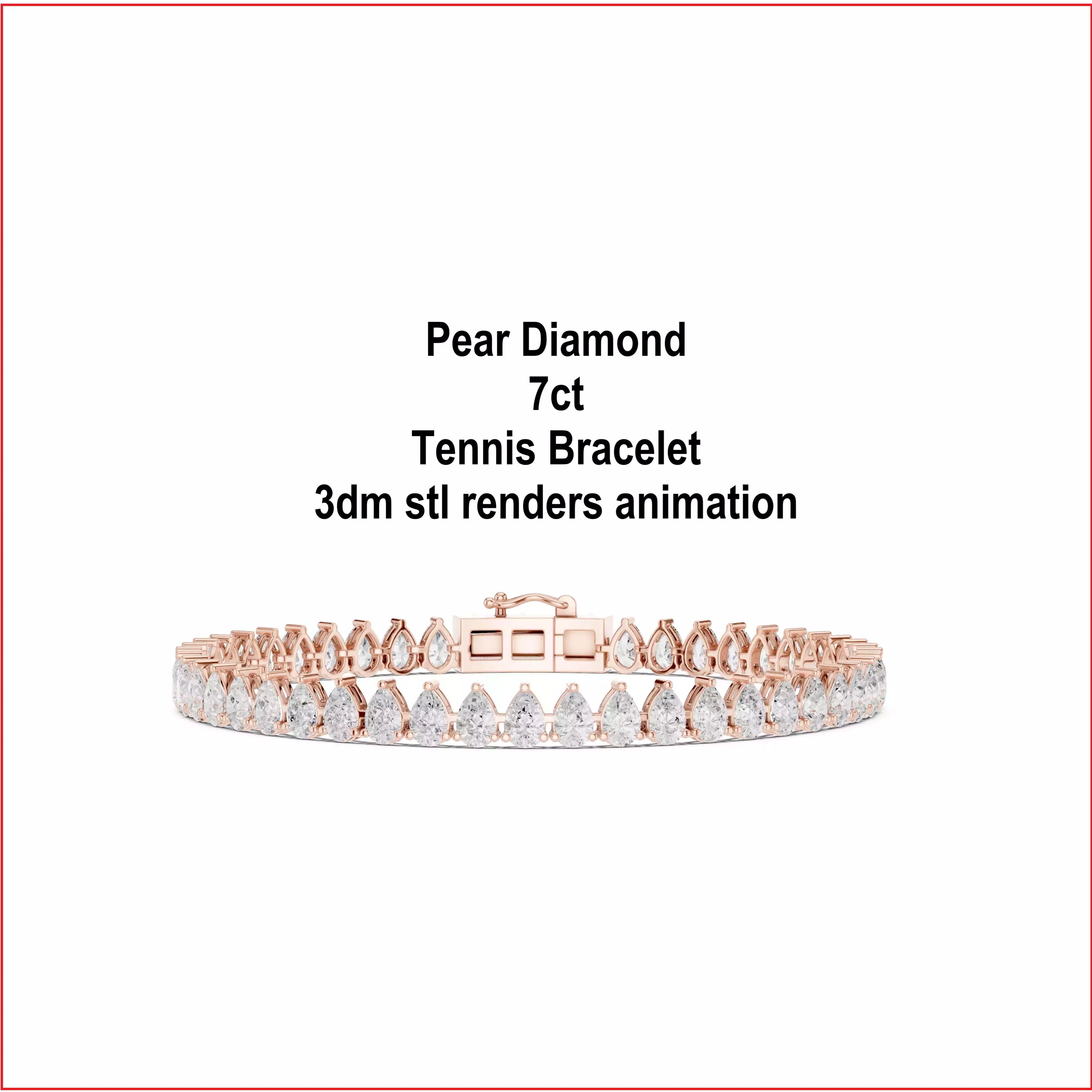 Pear Diamond 7ct Tennis Bracelet 3dm stl renders animation 3D print model