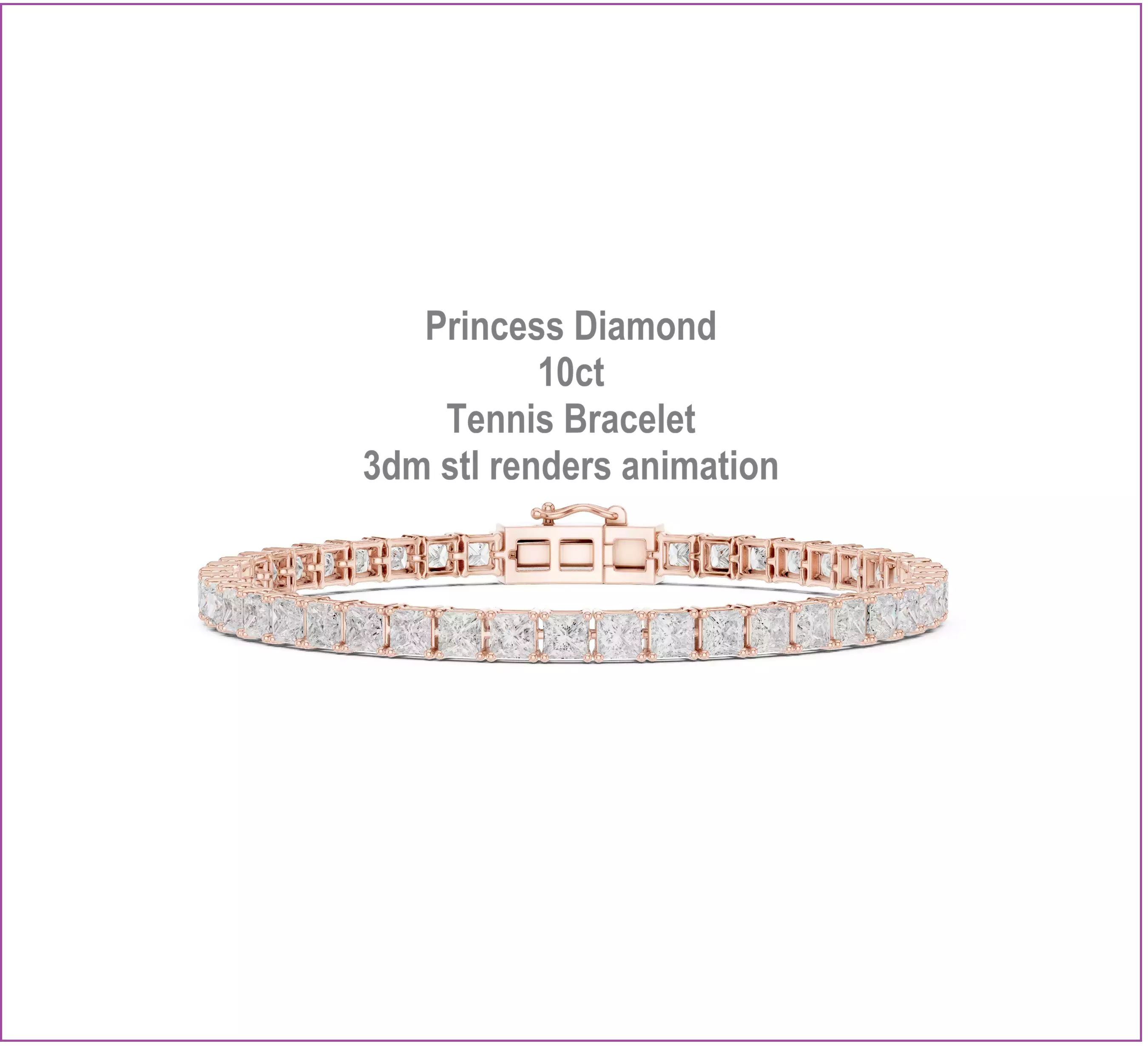 Princess Diamond 10ct Tennis Bracelet 3dm stl renders animation 3D print model