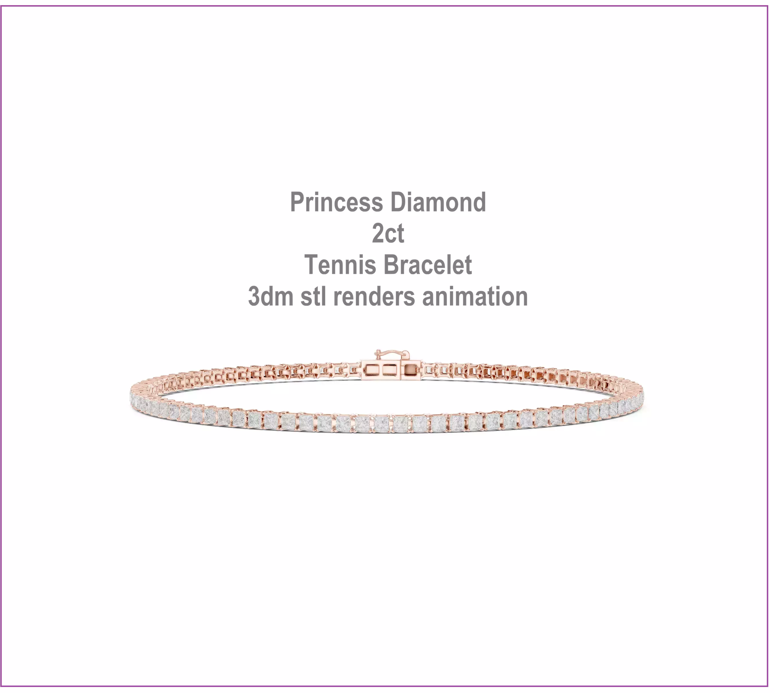 Princess Diamond 2ct Tennis Bracelet 3dm stl renders animation 3D print model