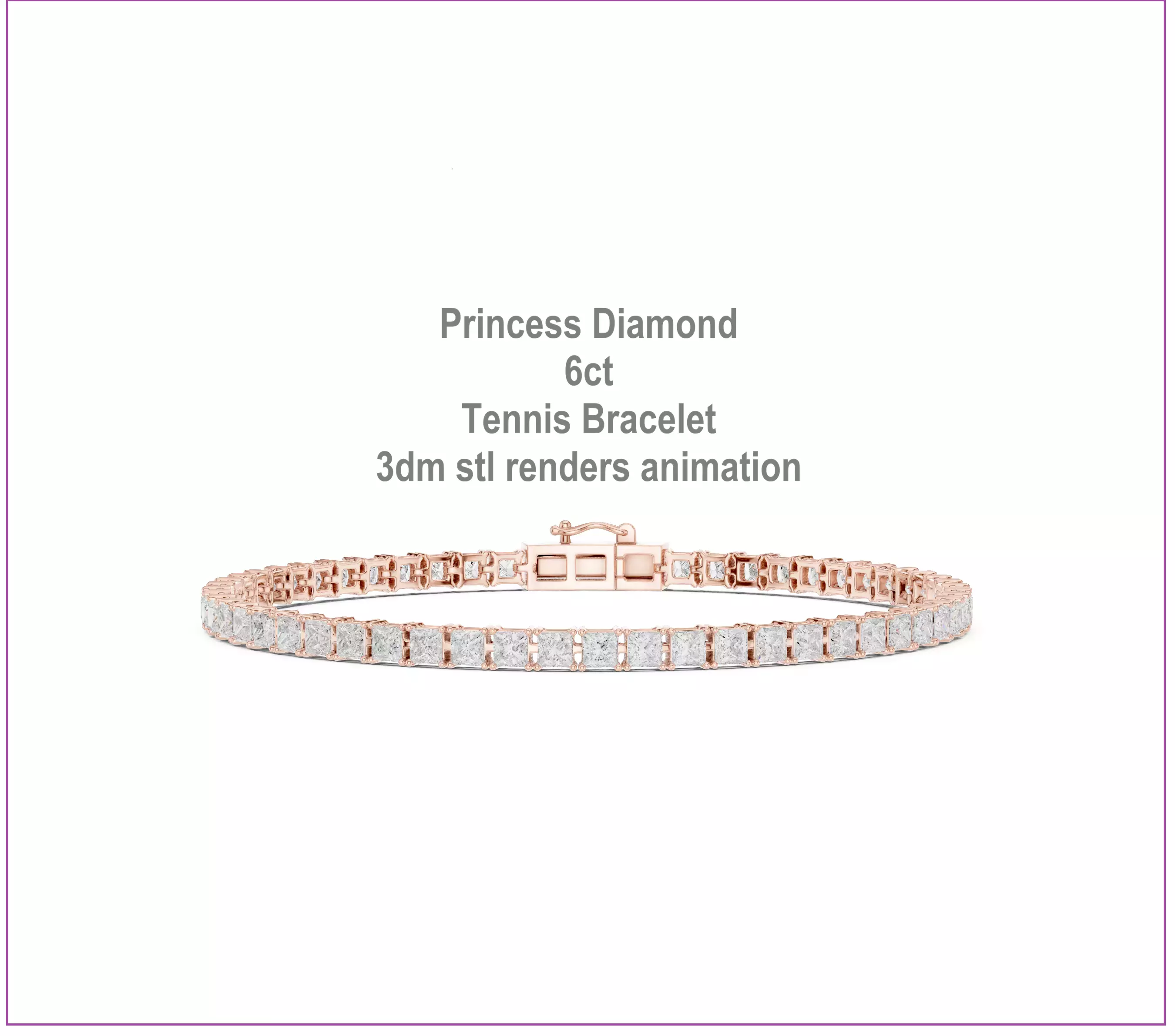Princess Diamond 6ct Tennis Bracelet 3dm stl renders animation 3D print model