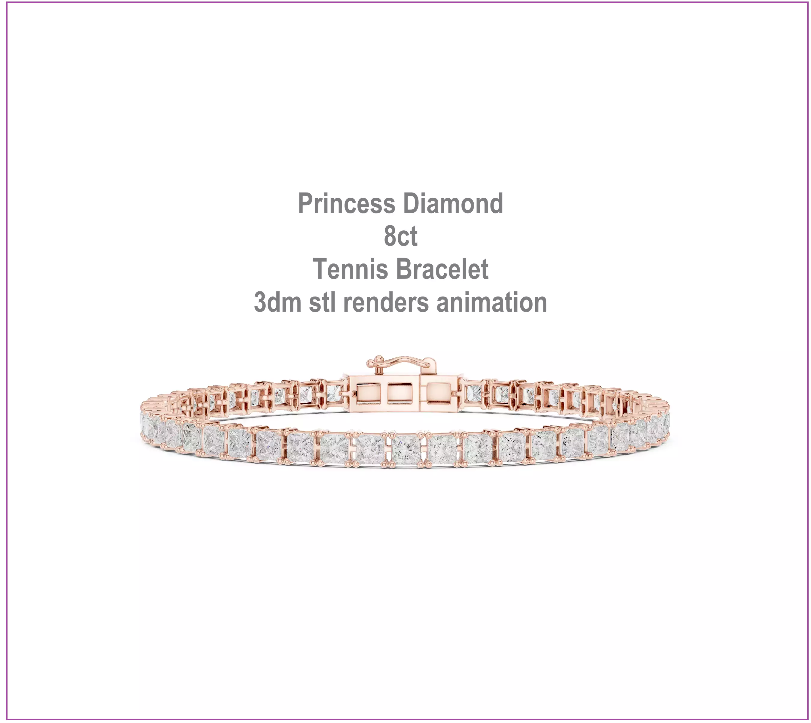 Princess Diamond 8ct Tennis Bracelet 3dm stl renders animation 3D print model