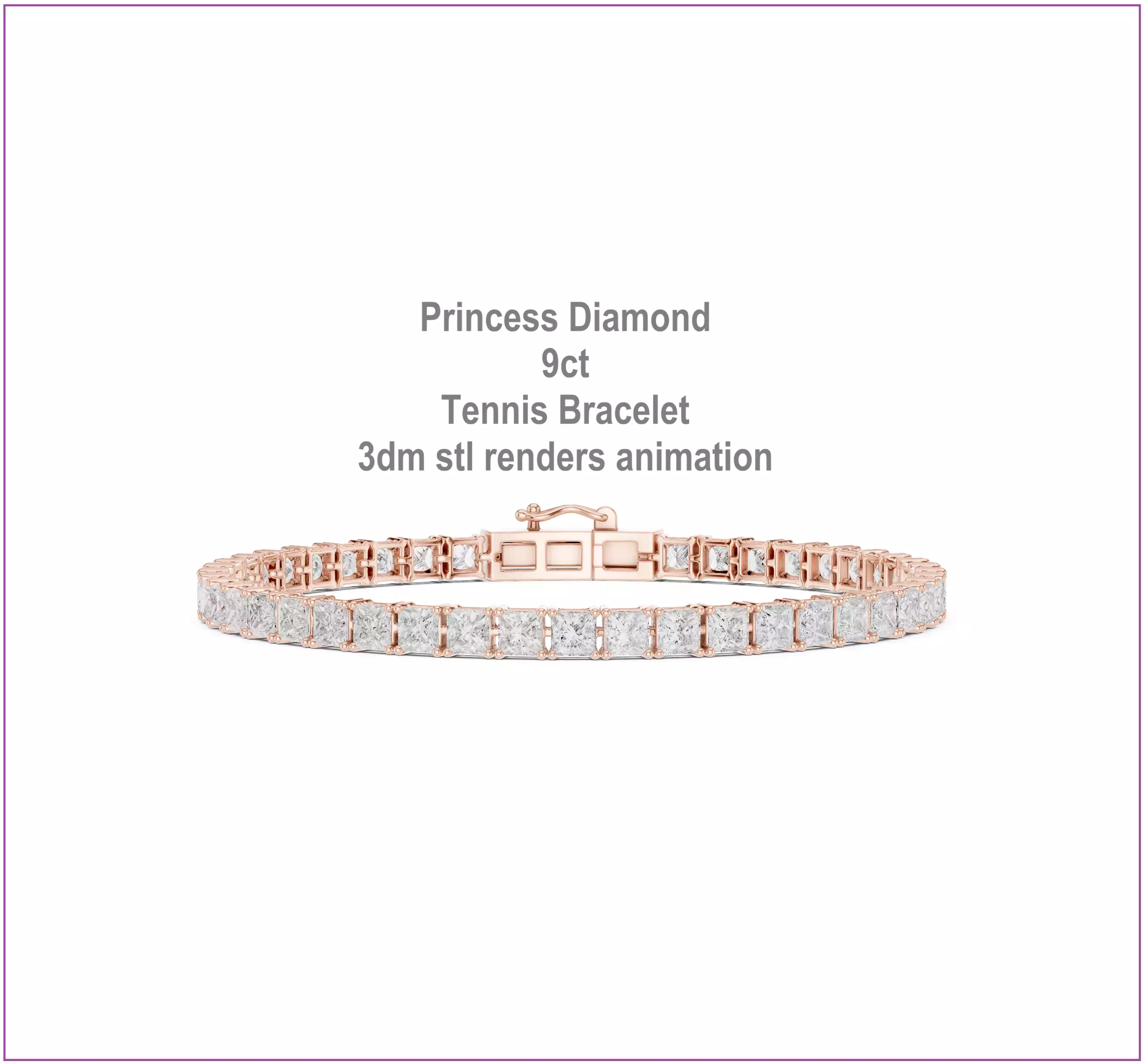 Princess Diamond 9ct Tennis Bracelet 3dm stl renders animation 3D print model