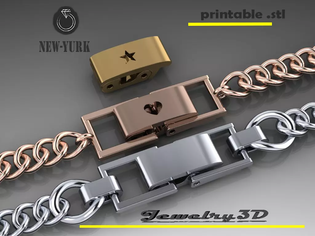 Printable jewelry3D lock clasp for bracelet or chain STL