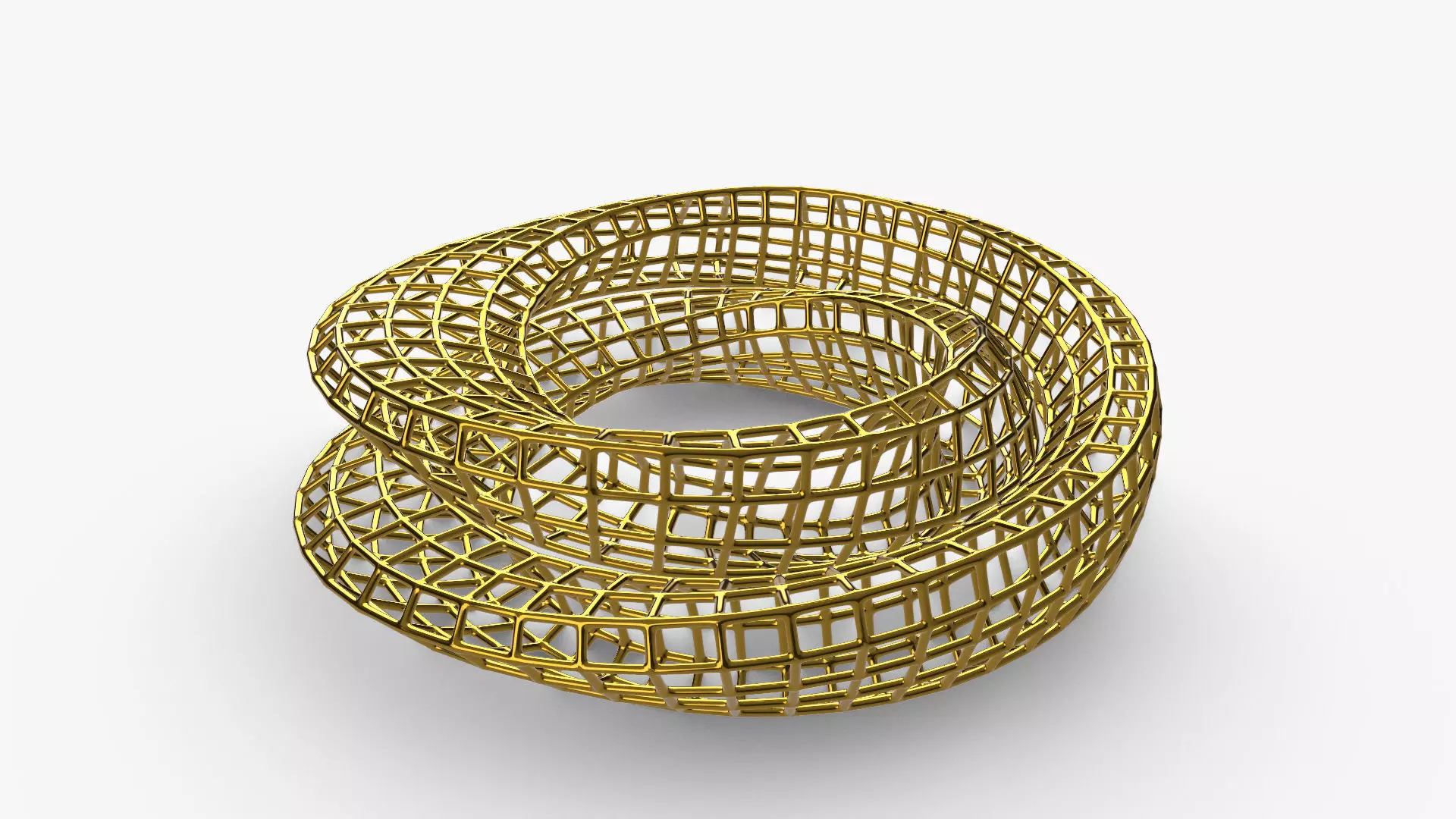 a Smooth Pattern Bracelet Jewellery with a scifi continuous surface network with a Pattern Mesh, the form is mathimatically complex and has a complicated network of continous pipes network, the model was created using computational parametric tools to achieve the most accurate geometry with clean details, it could be used for 3d printing as a fashion accessory and wearable, it suits most of the wrist sizes for easy wearing and it isn't uncomfortably tight on wrists, the designs are unique and suits the modern fashion era of digital fabrication, cyber style, generative design and scifi conceptual art designs.