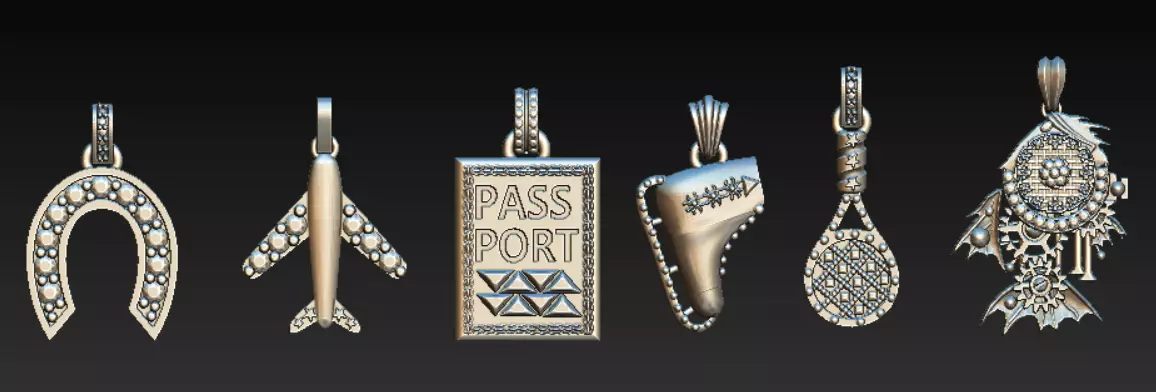 This exclusive 3D printable pendant set captures the spirit of travel, exploration, and freedom through six symbolic designs. Each pendant is precisely sculpted using Rhino3D and ZBrush, ensuring fine craftsmanship, smooth surfaces, and stone-ready settings — perfect for metal or resin 3D printing.