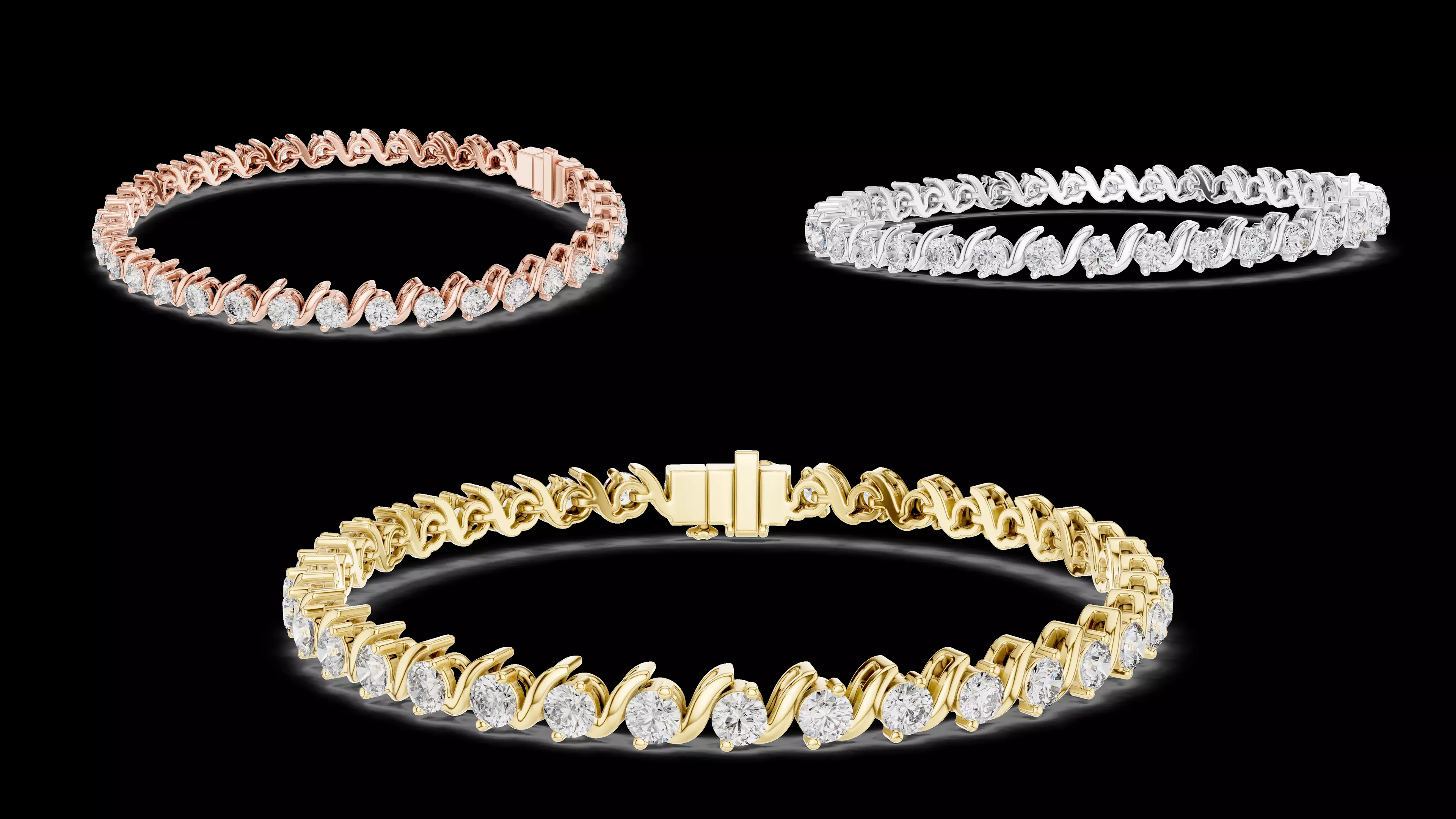 IMPORTANT POINTSProduction-ready professional CAD modelFlowing wave diamond layoutPrecise round stone seat alignmentSecure prong setting configurationFlexible articulated link constructionIntegrated box clasp with safety lockOptimized metal weight structureClean and detailed casting-ready geometryEasy wrist size customization