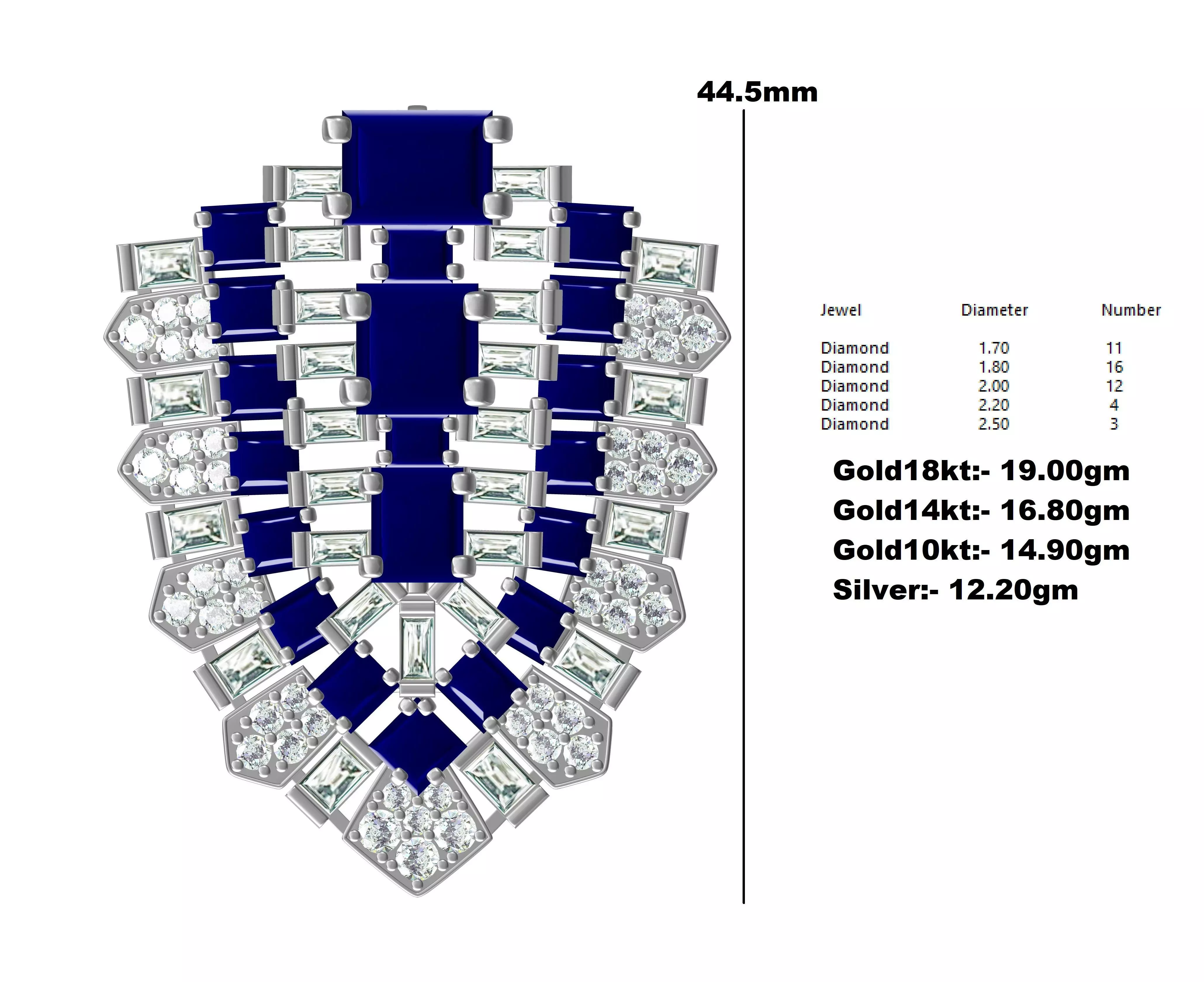 Blue Saphhire Baguette and Round Diamond Art Deco Brooch