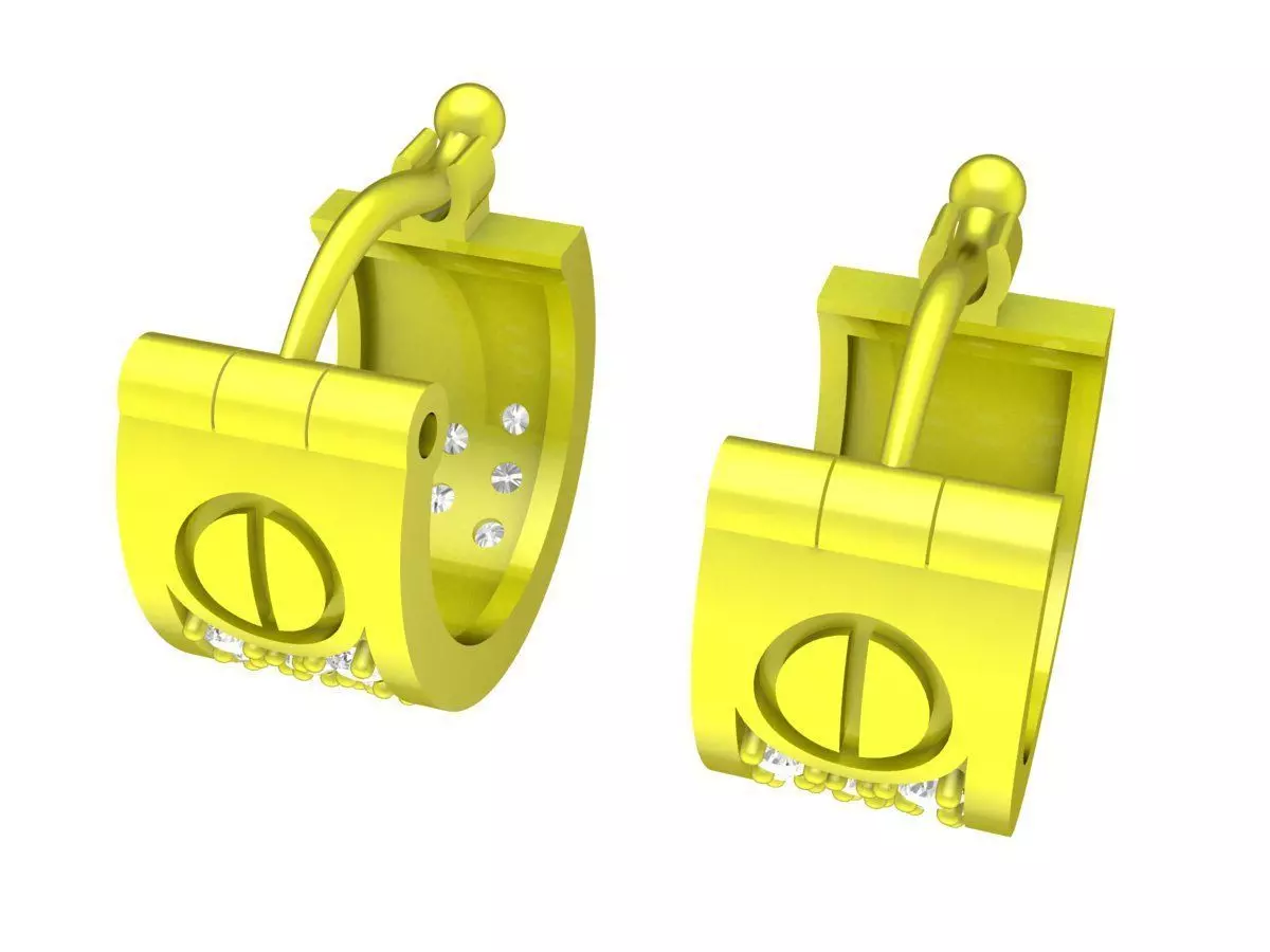 These luxury pavé hoop earrings are professional 3D jewelry models created for fine jewelry production and high quality visualization. The design features a modern hoop structure with a bold squared profile, combined with a secure hinged clasp and pavé set stones along the lower front section.