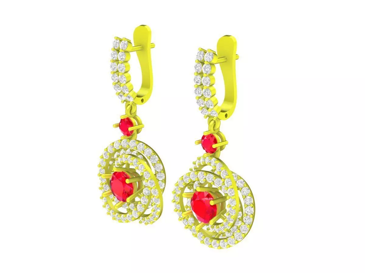 This luxury round halo drop earrings jewelry 3D model features an elegant dangling design with a round center stone framed by a brilliant halo of pavé-set accent stones. The drop structure is connected to a pavé-set hoop or lever back, creating graceful movement and strong visual impact when worn.