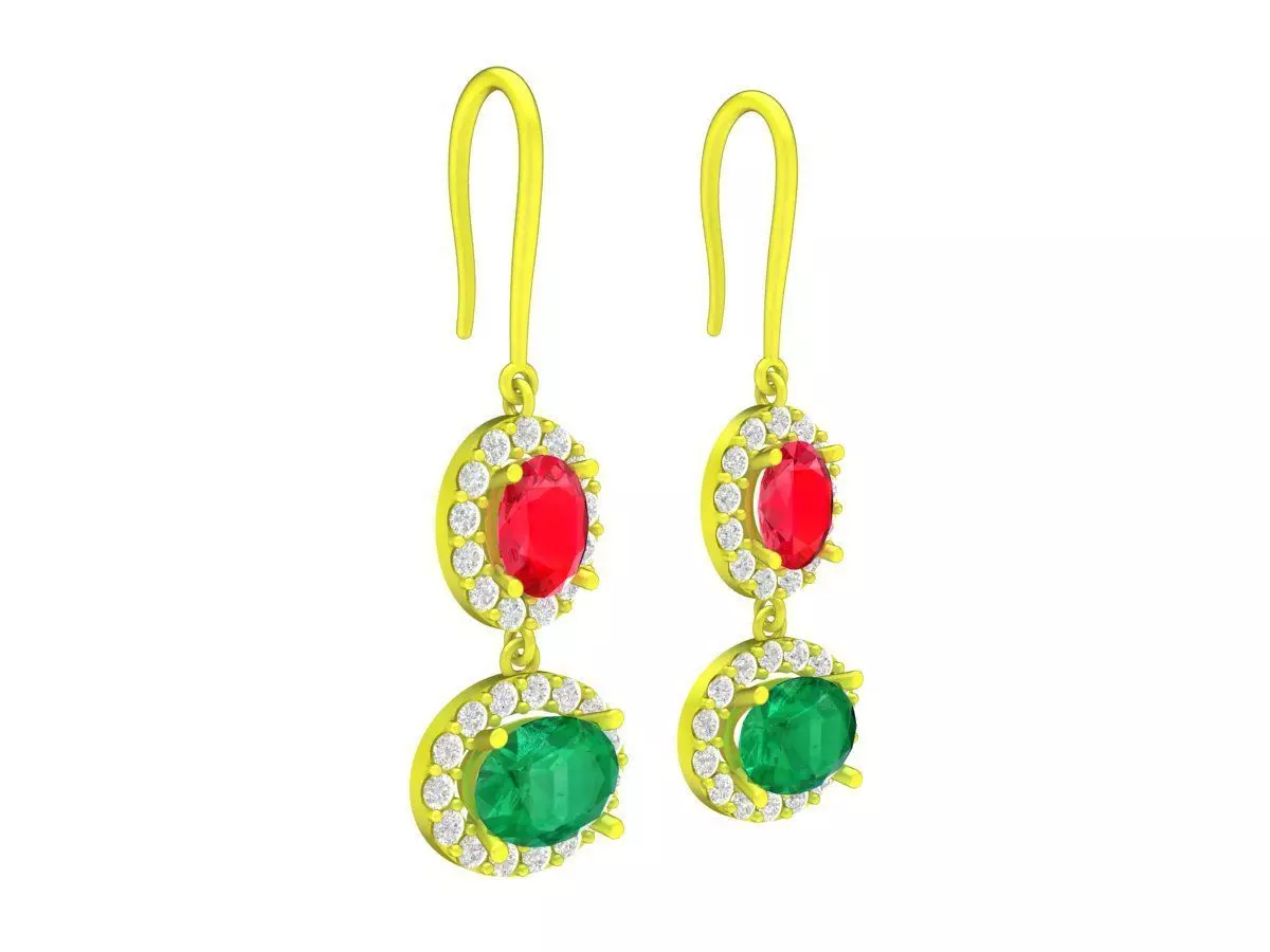Elegant Double Oval Drop Gemstone Earrings 3D Model 5901 3D print model