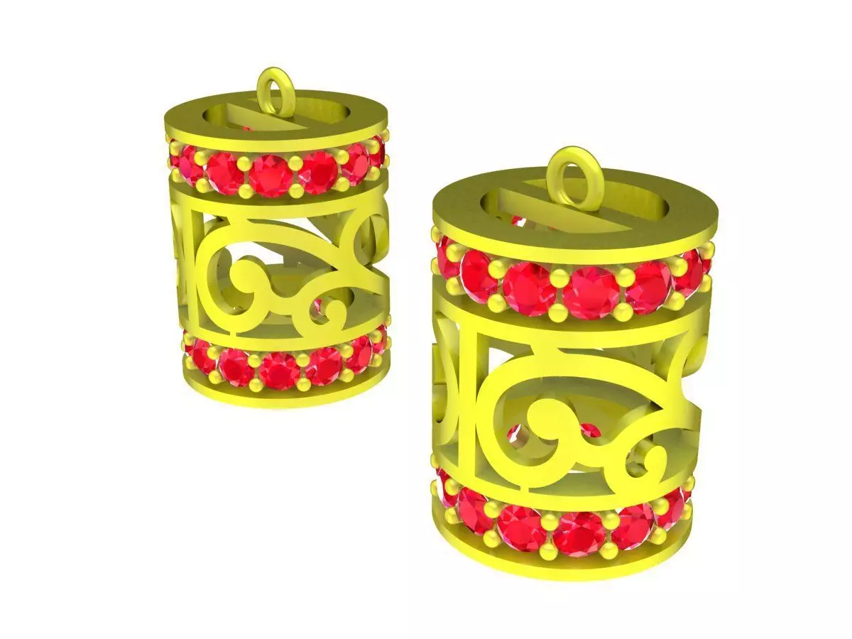 This luxury openwork cylinder pavé pendant 3D model features a distinctive cylindrical form combined with elegant openwork patterns and pavé gemstone bands. The design showcases a refined balance between solid structure and decorative cutouts, creating visual depth while maintaining a luxurious and contemporary character.