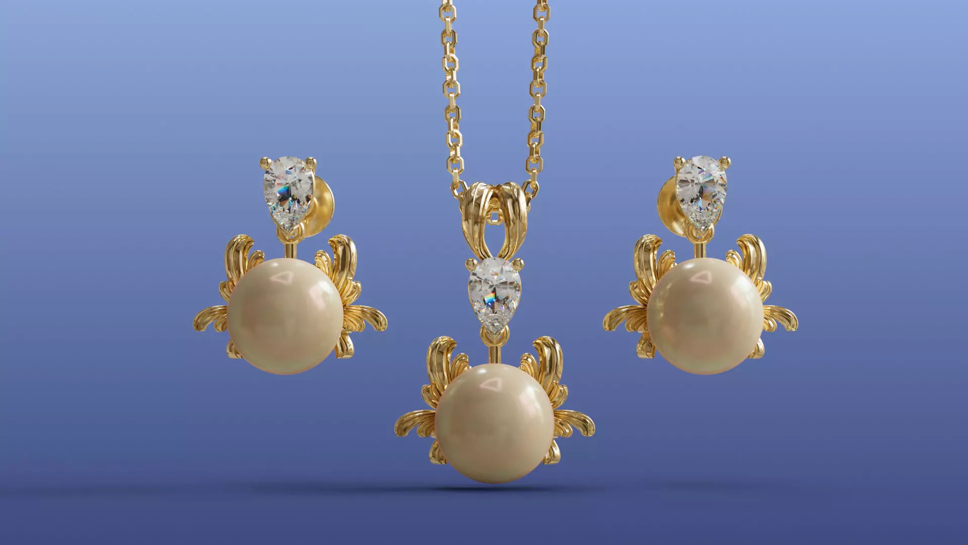 DescriptionThis high-quality 3D CAD jewelry set features a sophisticated pendant and matching earrings, blending organic oceanic motifs with classical elegance. The design centers on a lustrous 9mm pearl cradled by stylized, leaf-like claws reminiscent of a decorative crab, topped with a brilliant pear-cut gemstone. This set is meticulously engineered for professional jewelry manufacturing, offering a perfect balance between artistic flair and structural integrity.