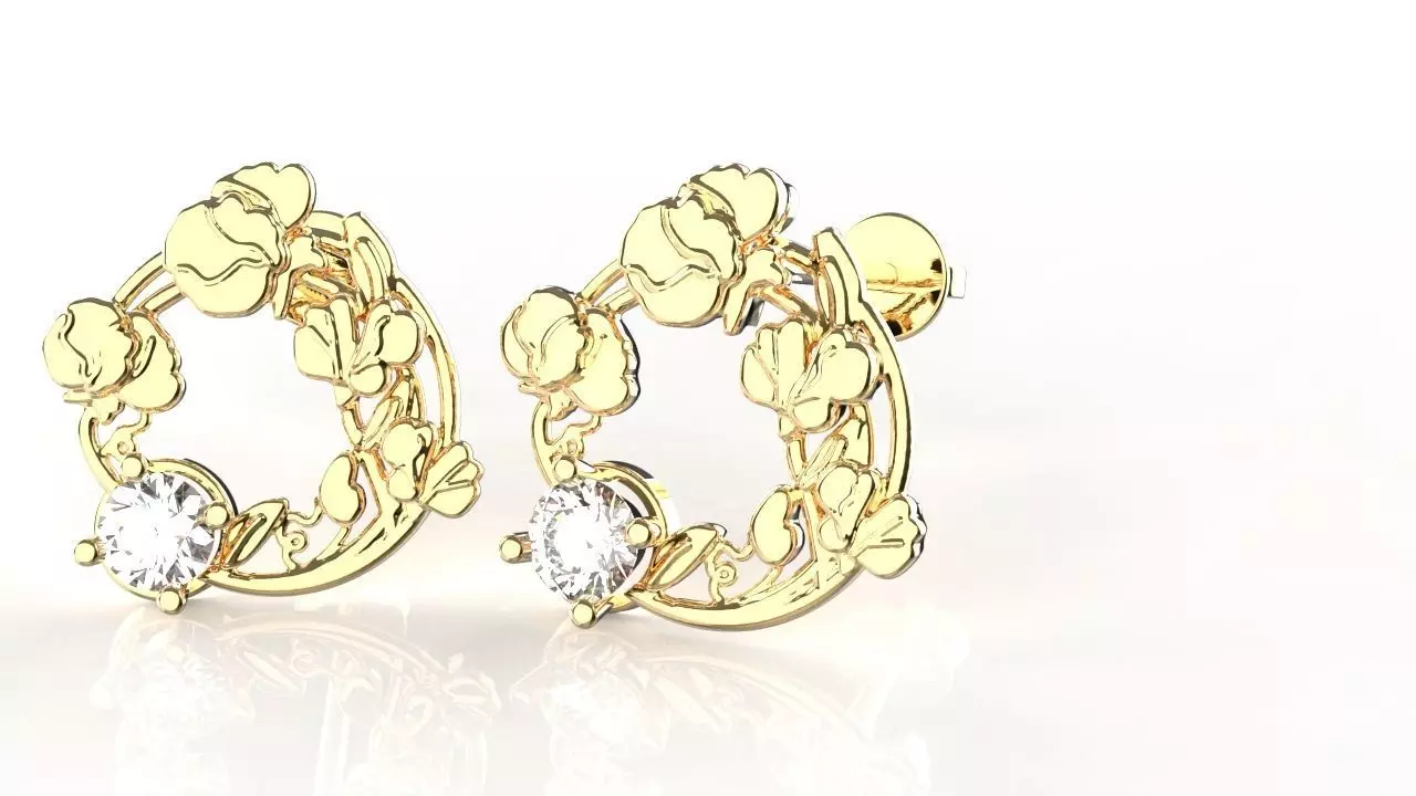 Simple, and solid stud earring with beautifully arranged April's birth-flower 'Sweet Pea' into a flower wreath inspired design. With diameter approximately 15 mm, this dainty earring purposely curated for daily and casual wear while maintaining its signature elegance. Finished product preferably to be adorned with diamond or clear cubic zirconia stone -- as April's birth stone.