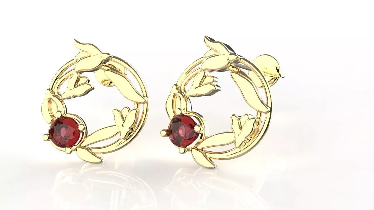 Simple, and solid stud earring with beautifully arranged January's birth-flower 'Snowdrop' into a flower wreath inspired design. With diameter approximately 15 mm, this dainty earring purposely curated for daily and casual wear while maintaining its signature elegance. Finished product preferably to be adorned with red garnet or deep red cubic zirconia stone -- as January's birth stone.