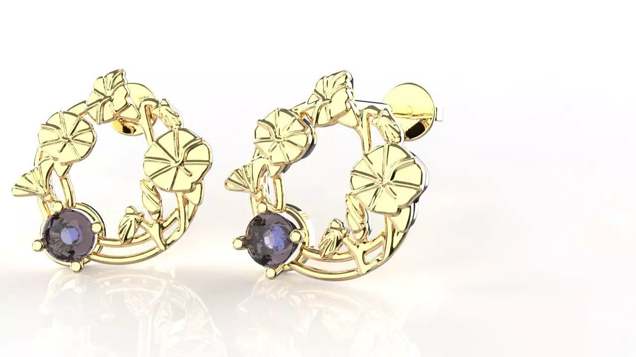 Simple, and solid stud earring with beautifully arranged September's birth-flower 'Morning Glory' into a flower wreath inspired design. With diameter approximately 15 mm, this dainty earring purposely curated for daily and casual wear while maintaining its signature elegance. Finished product preferably to be adorned with blue sapphire or deep blue cubic zirconia stone -- as September's birth stone.
