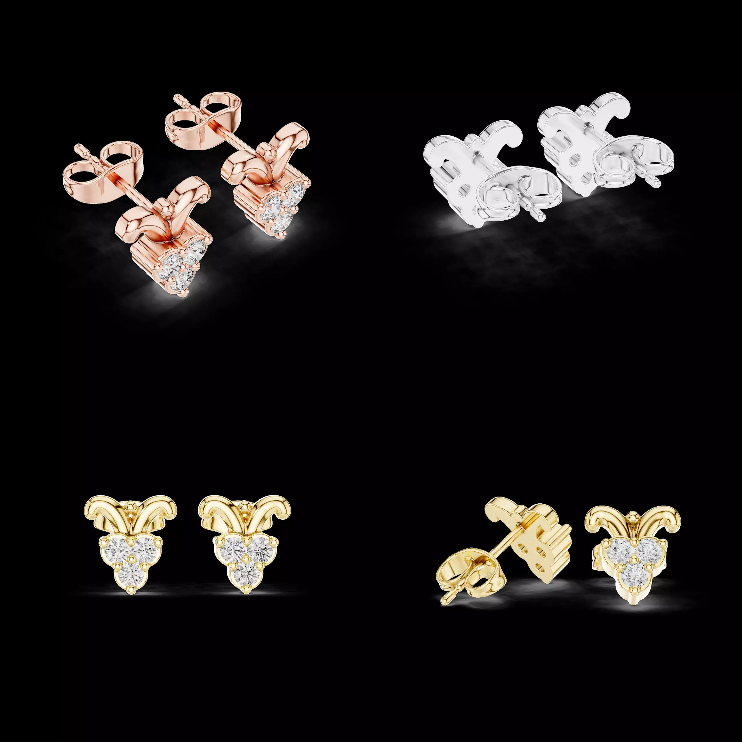 This butterfly bow cluster stud earrings 3D model is a professionally crafted jewelry CAD design created for real manufacturing use. The design combines a soft butterfly-inspired top form with a balanced cluster of stones, creating a graceful, lightweight look that feels premium and commercially appealing.