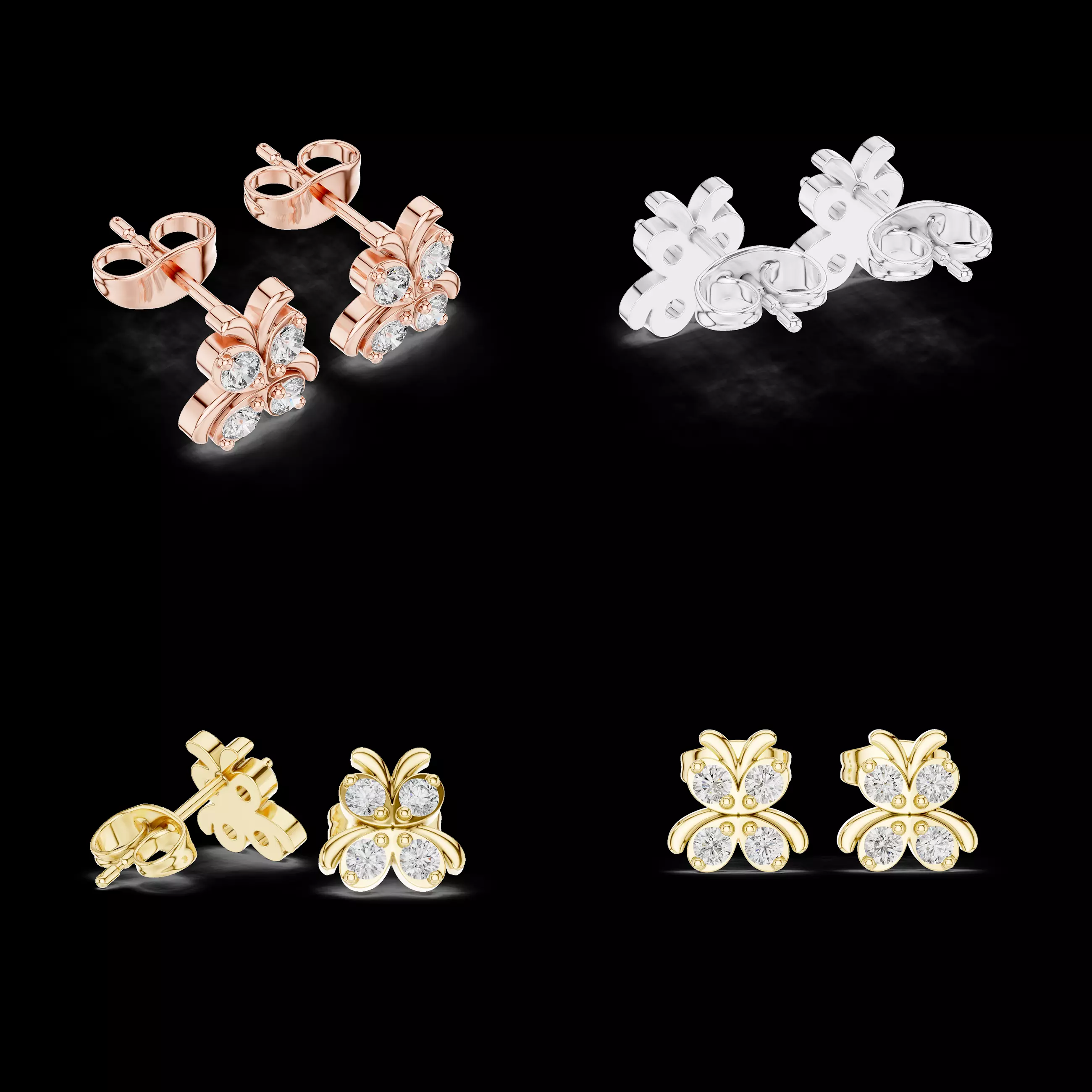 This elegant butterfly-inspired stud earring design offers a delicate and charming aesthetic combined with professional jewellery construction. The model features a graceful butterfly silhouette formed with a balanced arrangement of round stones, creating a soft yet luxurious look suitable for fine jewellery collections.