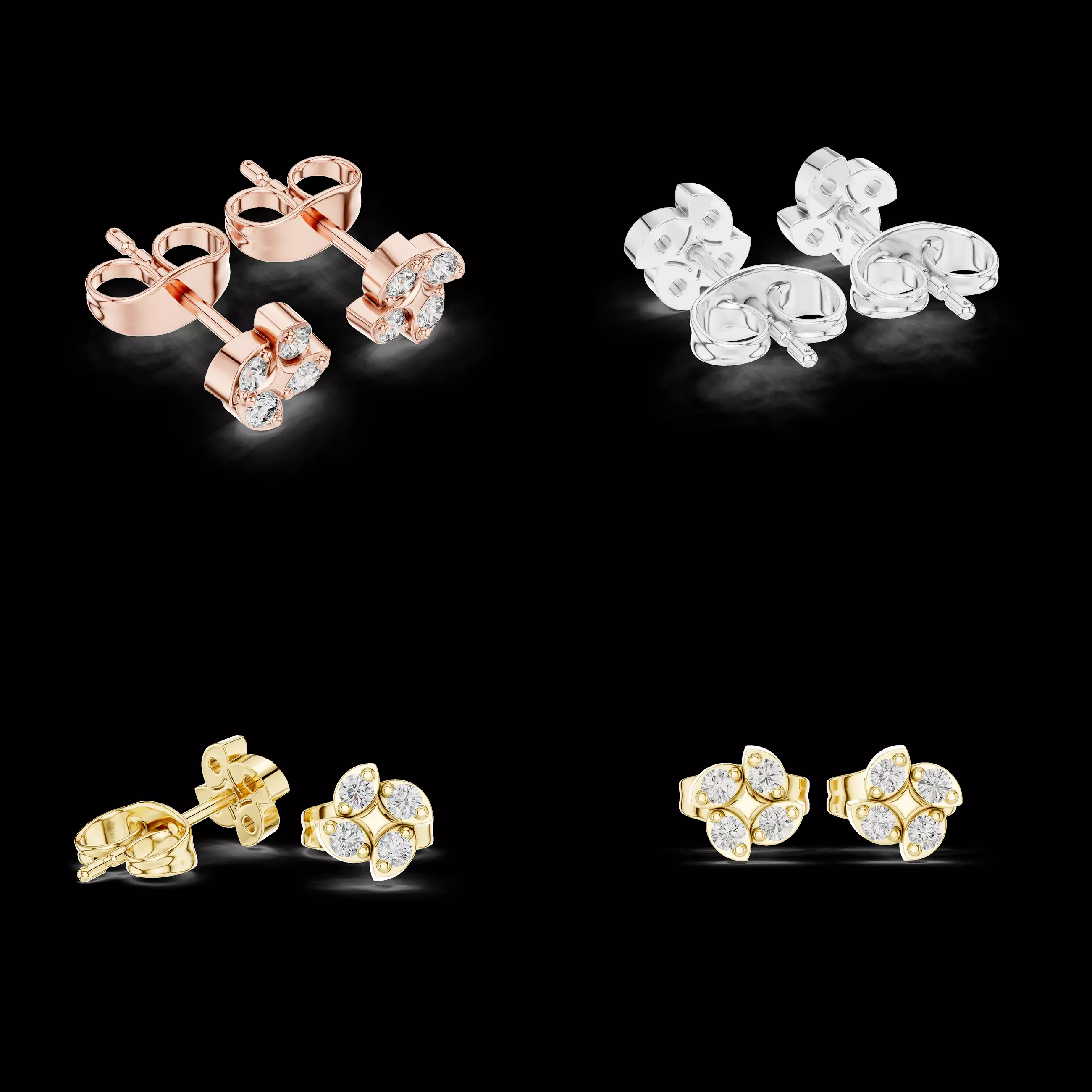 This compact floral diamond stud earrings 3D model is a clean, refined, and production-focused digital jewellery design created for professional manufacturing workflows. The design features a balanced floral cluster arrangement of round stones, delivering a soft yet premium appearance that works beautifully across fine jewellery, daily wear collections, and elegant gifting lines.
