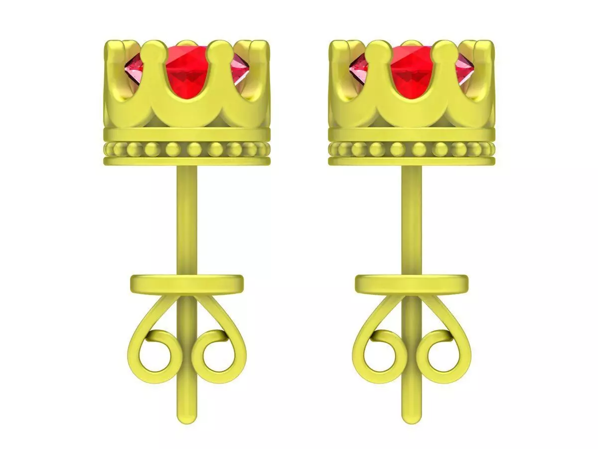 These luxury crown gemstone stud earrings are a playful yet refined 3D jewelry design inspired by the classic royal crown motif. Each earring features a round center gemstone securely set within a crown-shaped structure, creating a charming balance between elegance and youthful character.