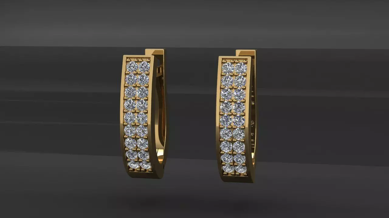 Diamond hoop earrings in two rows 3D print model