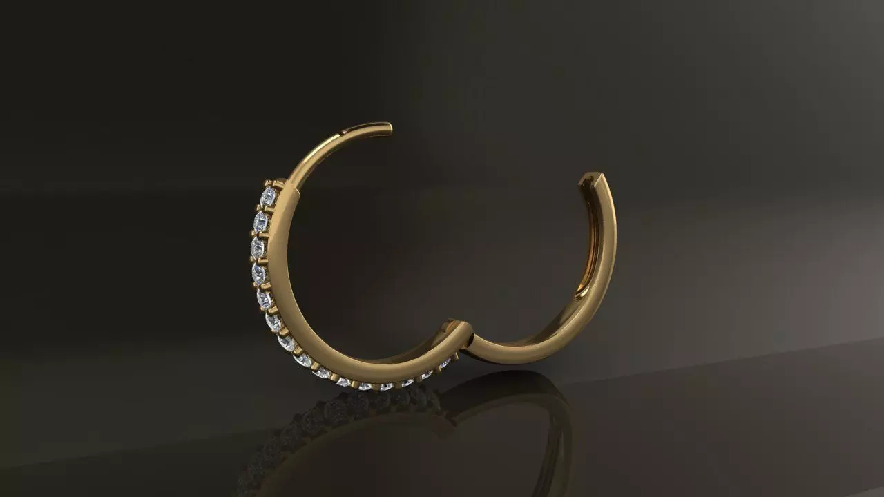 Earring One Sided Diamond Hoop ( Mid Size ) ( 15mm Inside Diameter )