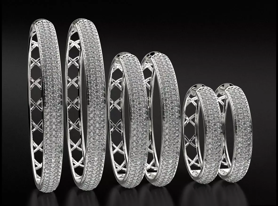 Earrings circles 50 40 30 mm with diamonds 747 3D print model