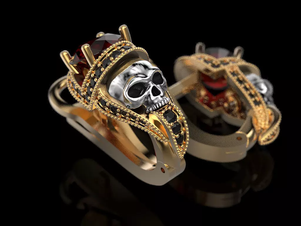 Ring to this earrings by reference https://www.cgtrader.com/3d-print-models/jewelry/rings/skull-engagement-ring