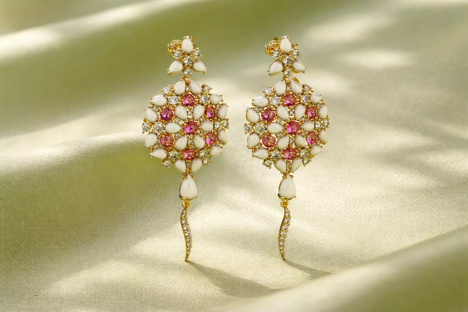 Note: Stones pear-shaped cabochon cut. / The color of the metal as well as the gems choices is merely illustrative. You can configure the jewelry according to your choice.