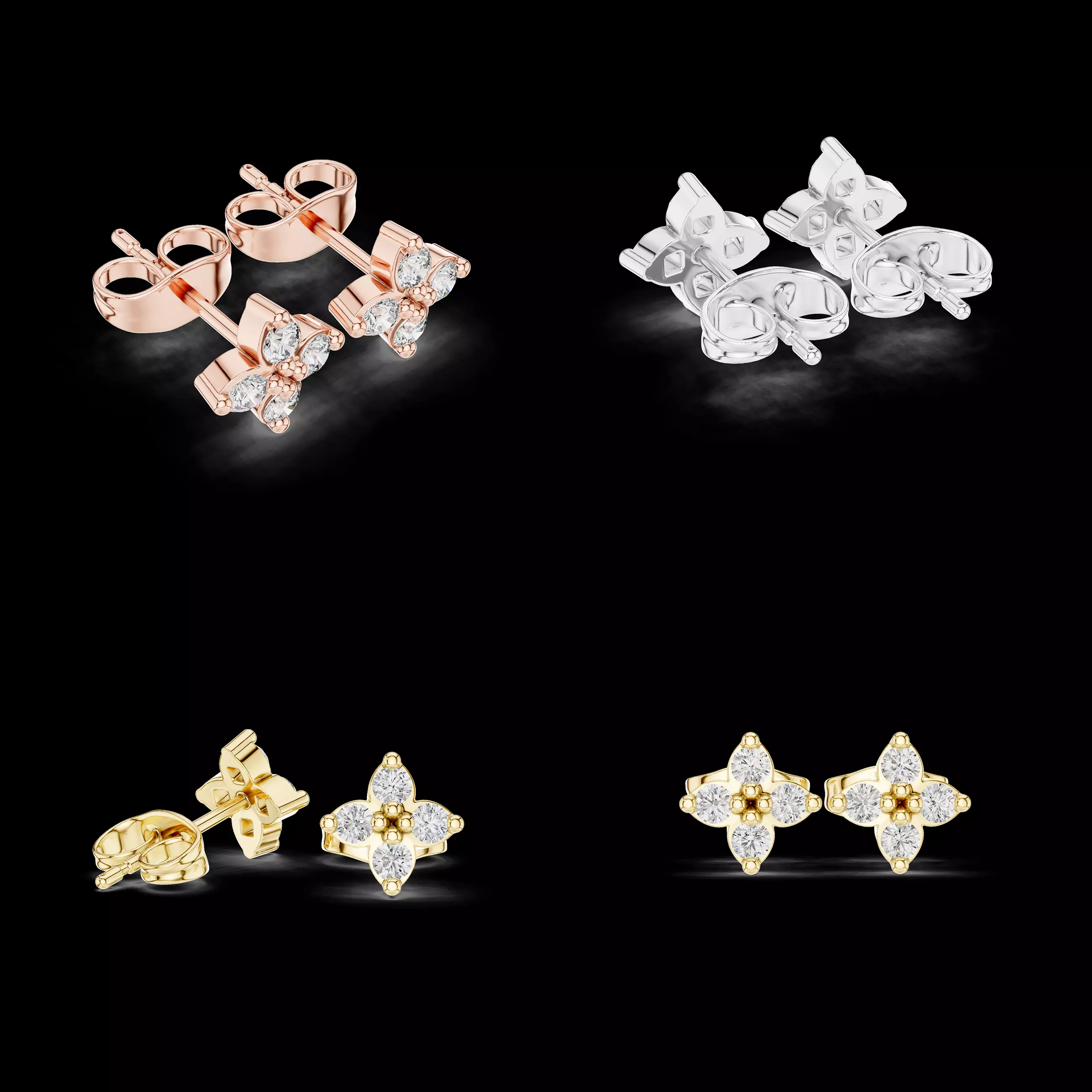 This elegant four-stone diamond stud earrings 3D model is crafted for professional jewelry designers and manufacturers who require timeless aesthetics combined with technically accurate construction. The design features a balanced floral cluster made of four primary stones with a refined central structure, giving the earrings a sophisticated and premium identity suitable for fine jewelry collections.