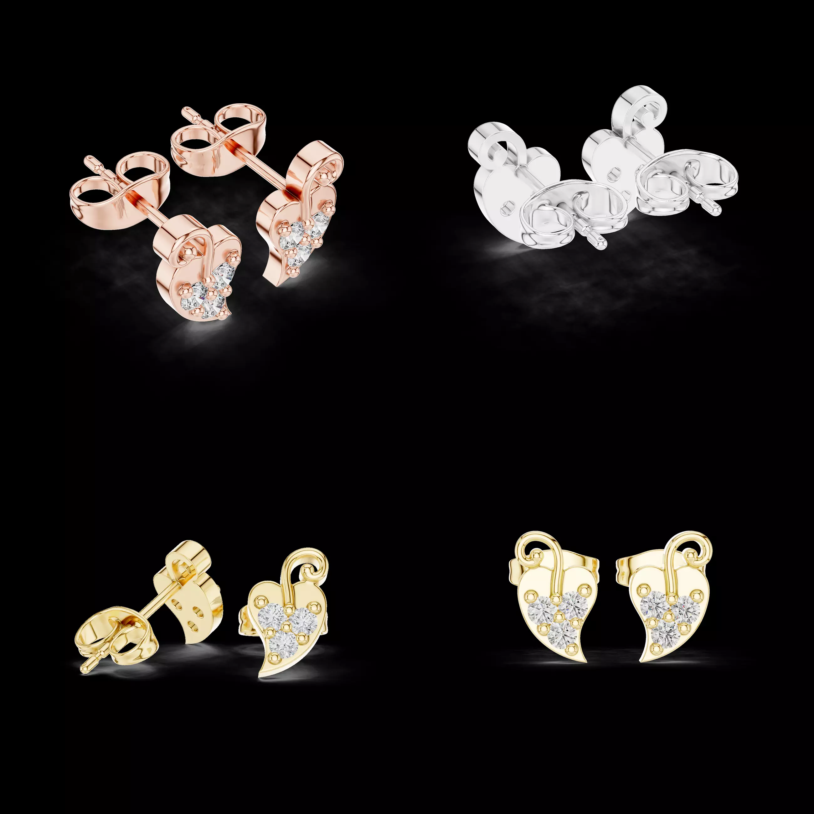This graceful leaf-inspired stud earring design blends organic flow with contemporary luxury. The curved top hook form gives a soft natural feel, while the diamond cluster adds brilliance and high-end appeal. A perfect balance of artistic styling and production practicality.