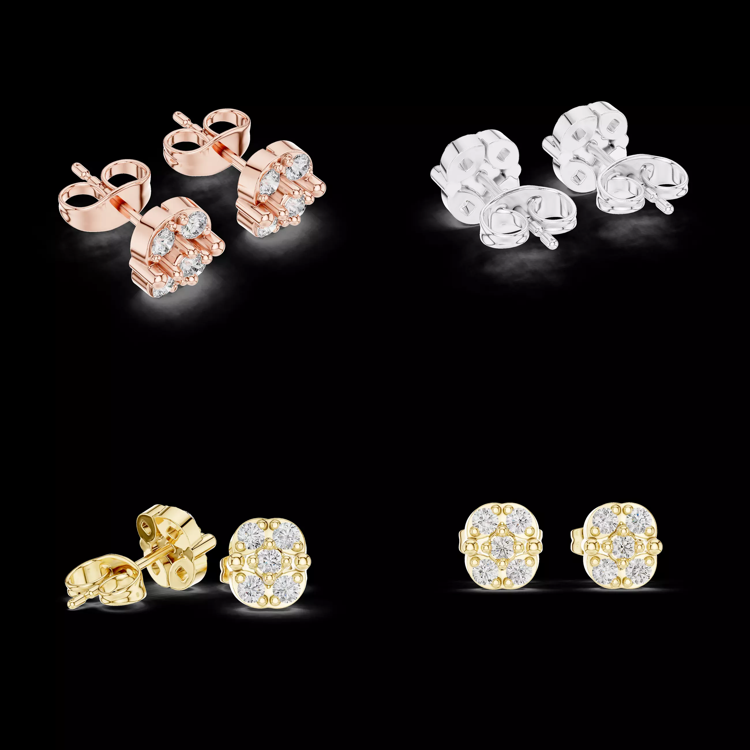 This elegant multi-stone diamond stud earrings 3D model is created for professional jewelry designers and manufacturers who require both aesthetic excellence and technical precision. The design features a sophisticated clustered stone layout with balanced proportions, giving the earrings a luxurious and premium appearance suitable for fine jewelry collections.