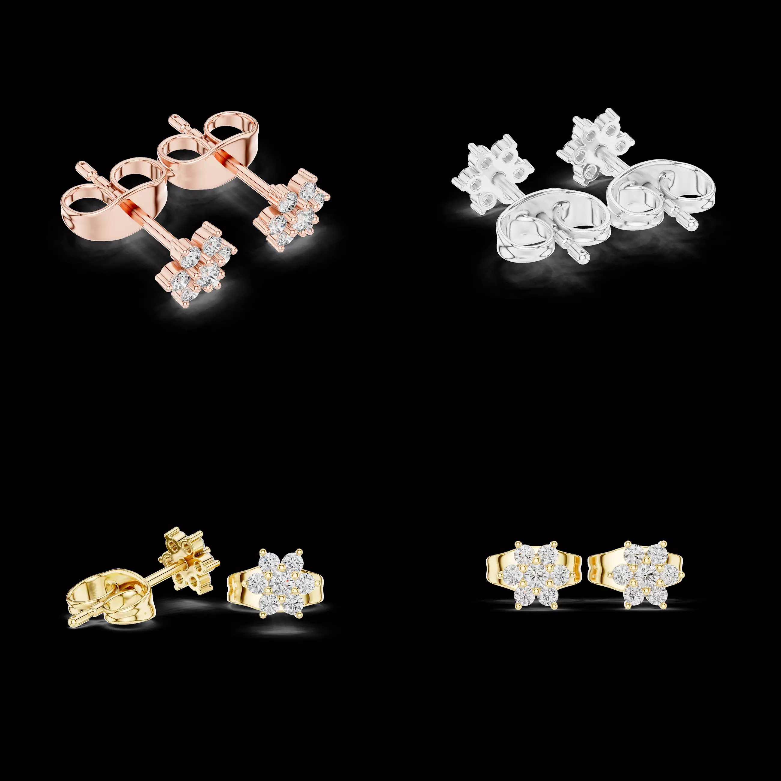 This product is a high-detail 3D CAD jewelry model of flower cluster stud earrings, designed for professional use in jewelry manufacturing, prototyping, and digital presentation. The design features a classic floral arrangement of round stones with precise prong settings and balanced proportions, suitable for luxury fine jewelry collections.