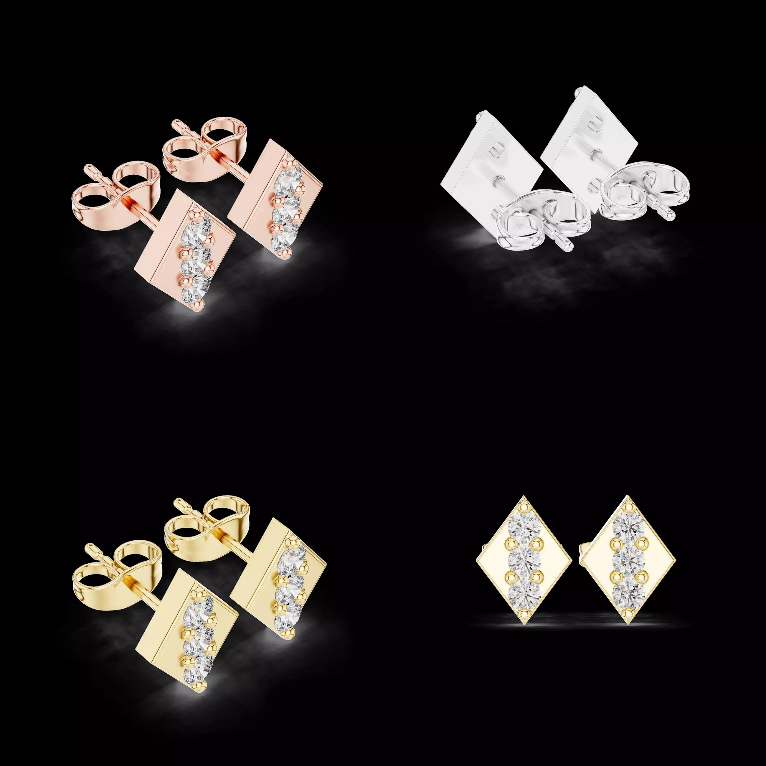 This geometric bar stud earrings 3D model is a modern and production-ready digital jewellery design created for professional jewellery workflows. The design features a clean rectangular face with vertically aligned round stones, offering a strong contemporary identity while maintaining elegance suitable for both premium fashion and fine jewellery collections.
