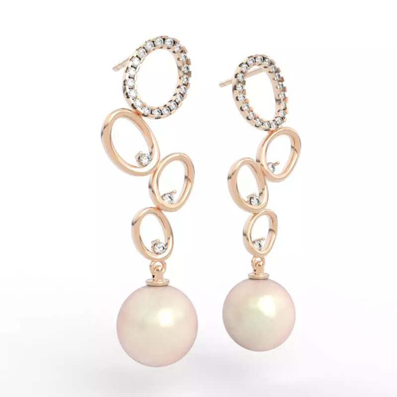 Height: 36.53mm for perfect proportional balancePearl Configuration: Two 9mm round pearls (4.5 carats total)Diamond Details: 44 precision-cut diamonds totaling 0.25 carats (38 stones at 1.125mm + 6 stones at 1.4mm)Design Elements: Graduated circular rings in vertical cascade formationStyle: Contemporary luxury with geometric sophisticationFile Formats Included: