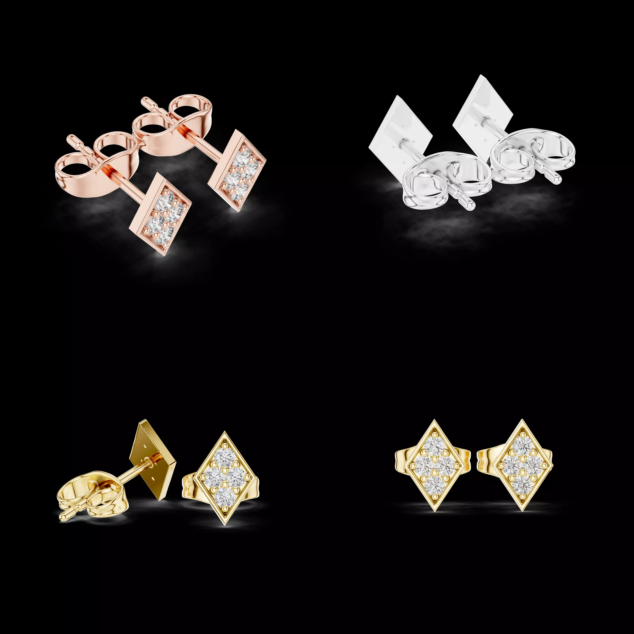 This geometric diamond cluster stud earrings 3D model is created for professional jewelry designers and manufacturers who want a modern, architectural look combined with premium commercial value. The design features a clean geometric form with a structured square-to-diamond orientation, filled with precisely aligned stones that deliver strong brilliance and visual symmetry.