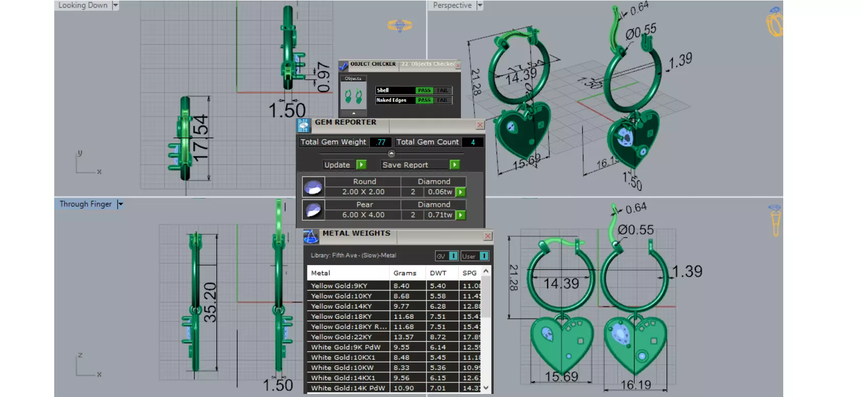 Diamond Size and Carat Weight: 2 round brilliant cut diamonds and 2 teardrop cut diamonds. Total diamond weight 0.77 carats. Check the diamond chart attached in the image